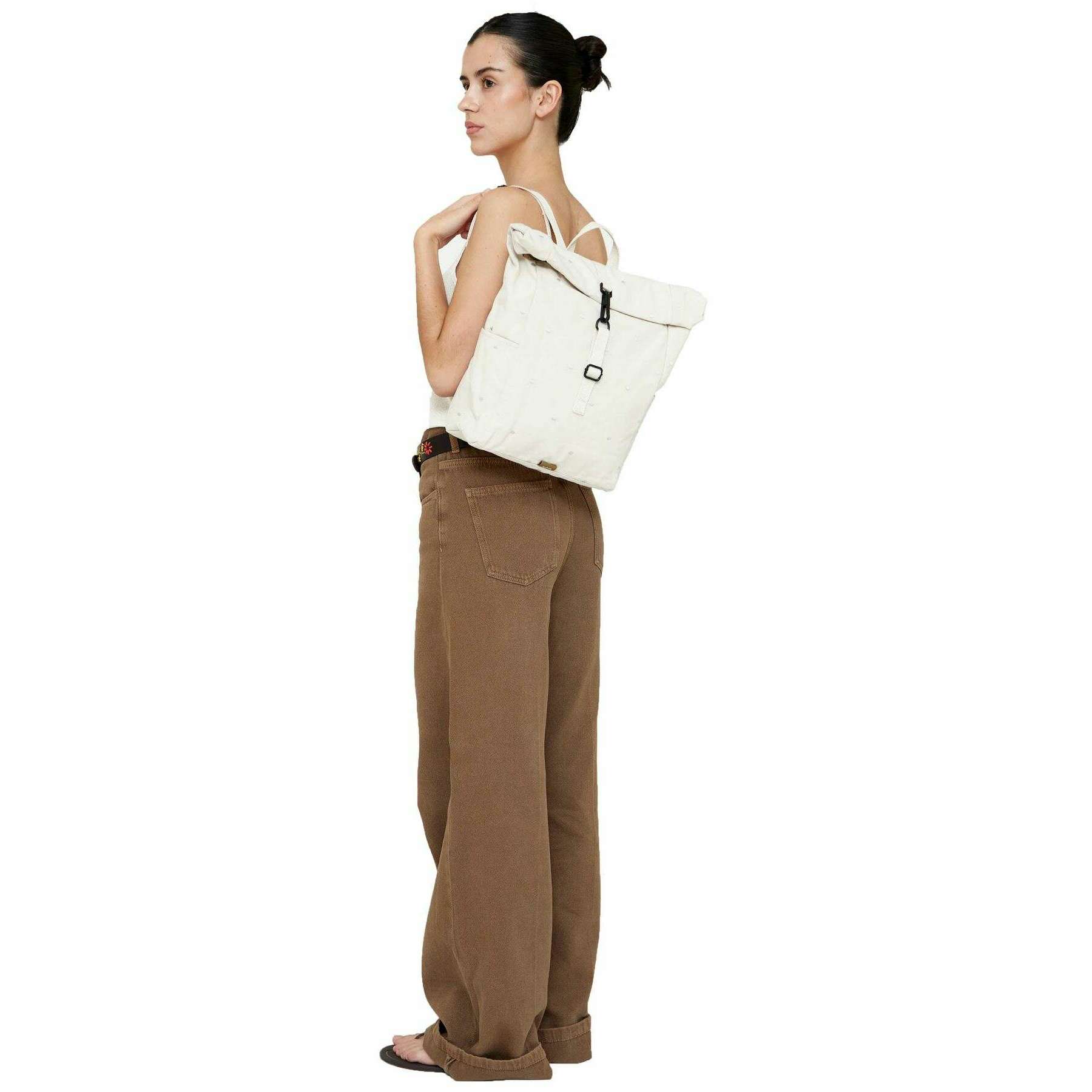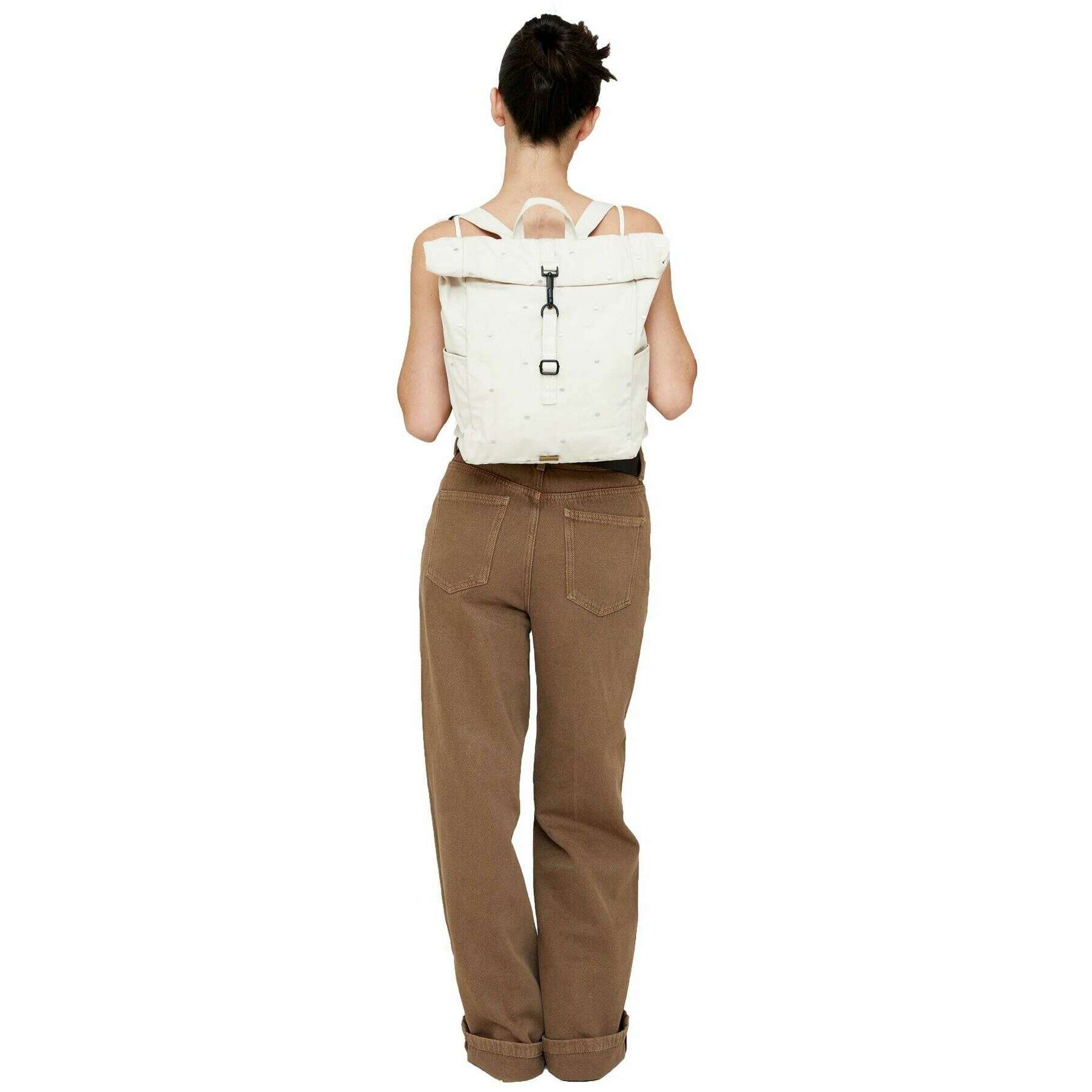 Mini plecak Lefrik Arles Roll - kremowy w kropki w kolorze ecru