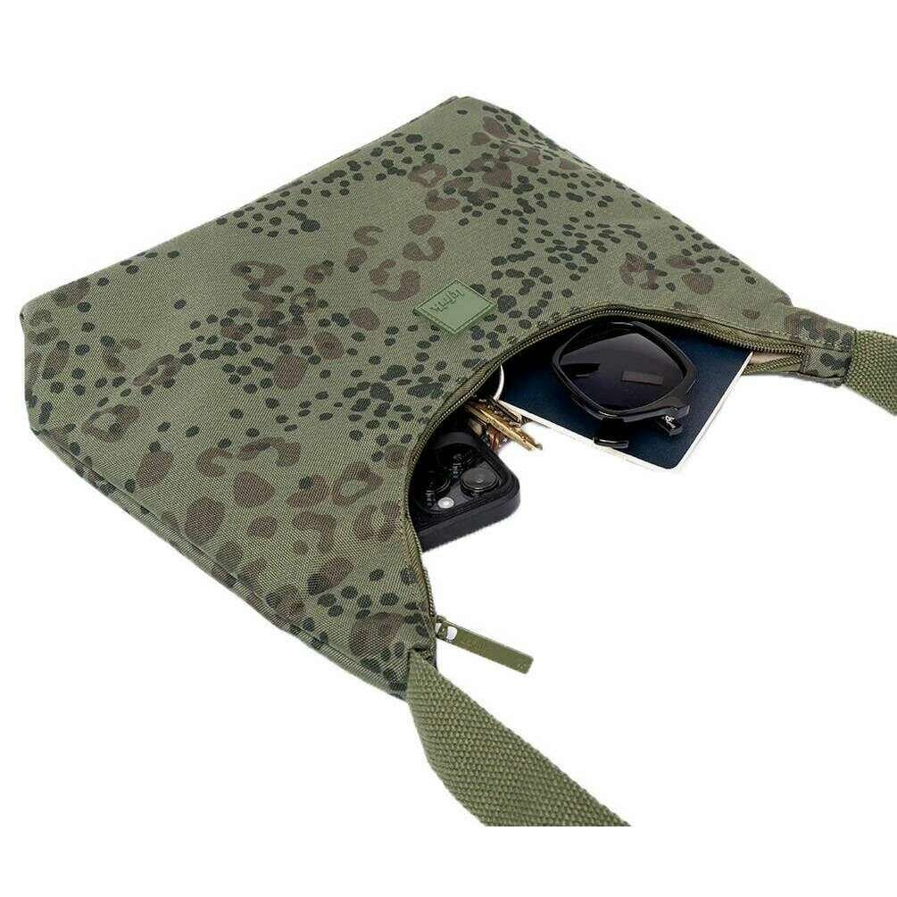 Torba na ramię Lefrik Bico z nadrukiem geparda - zielona/czarna