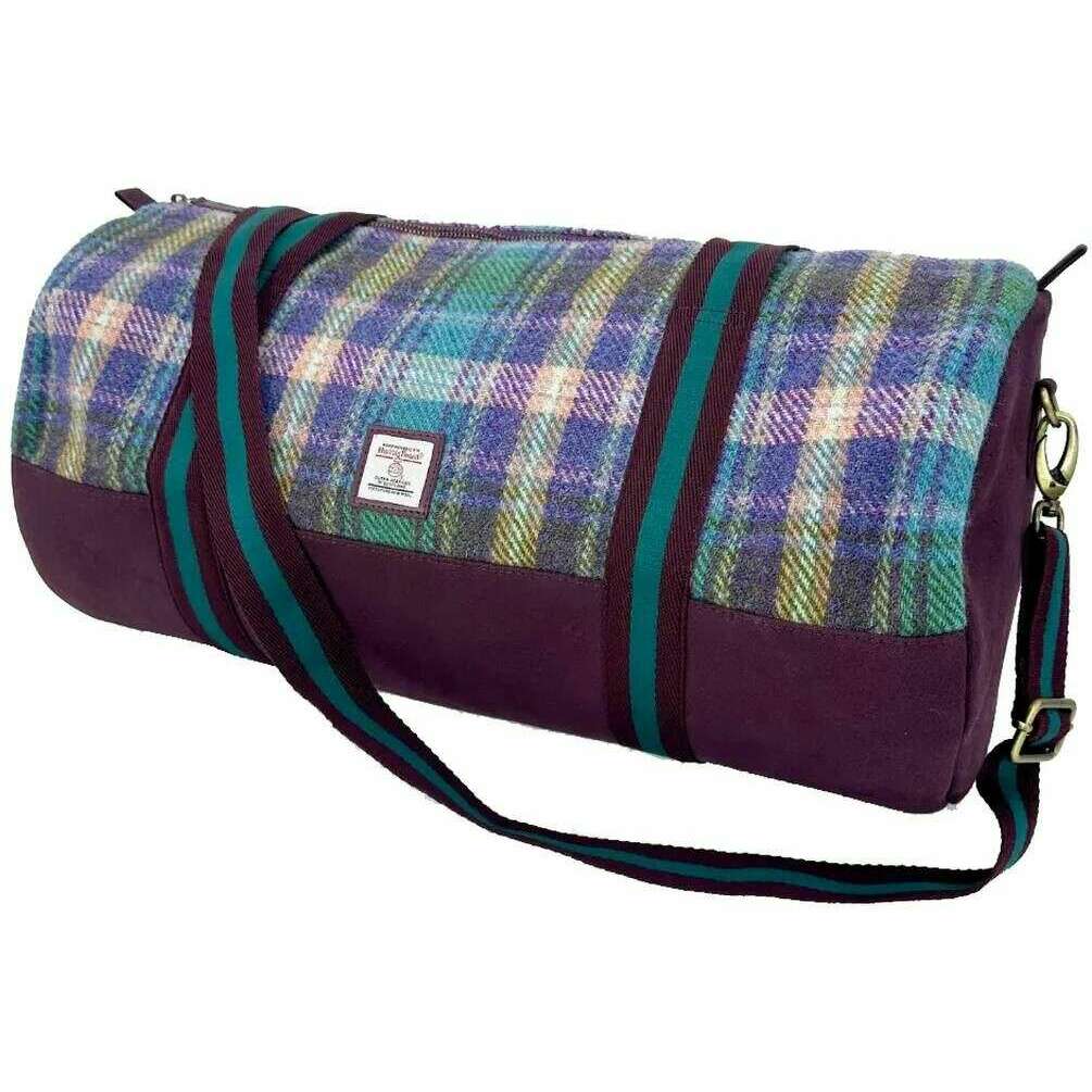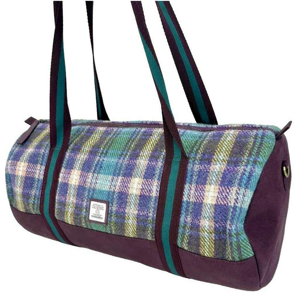 Torba podręczna Mcaccessori Harris Tweed Barrel - zielony/fioletowy