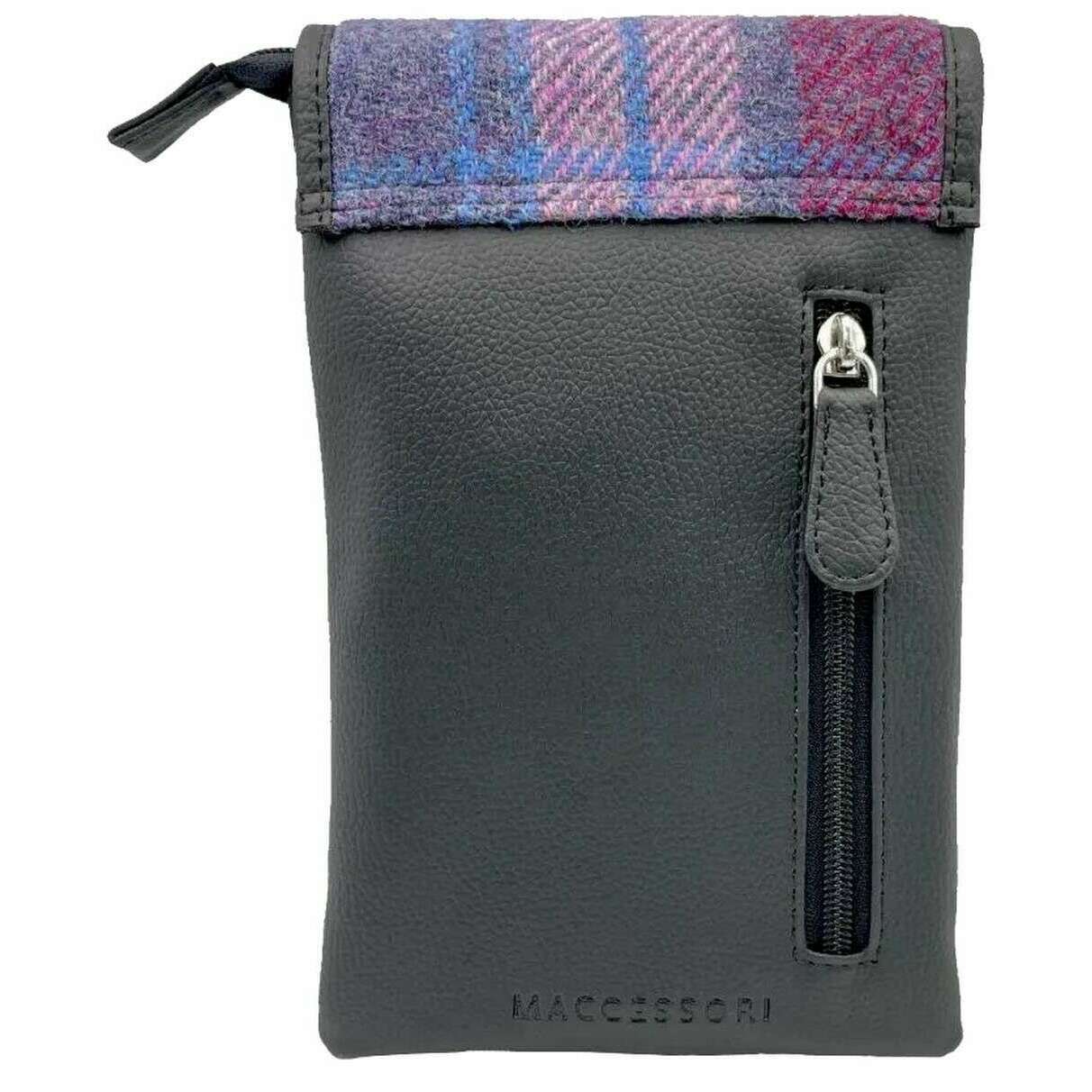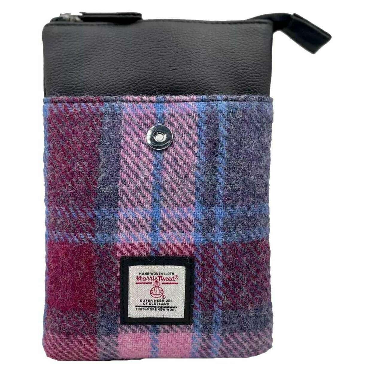 Mini torba na ramię Mcaccessori Harris Tweed - pastelowy róż/fiolet