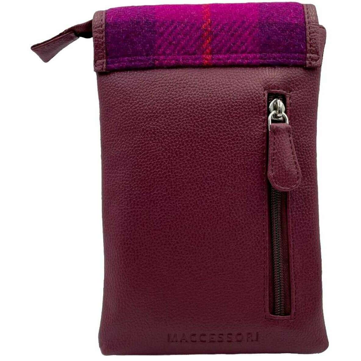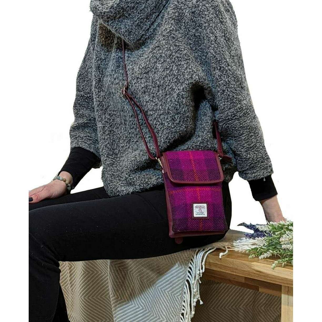 Mini torba na ramię Mcaccessori Harris Tweed - fioletowo-różowa