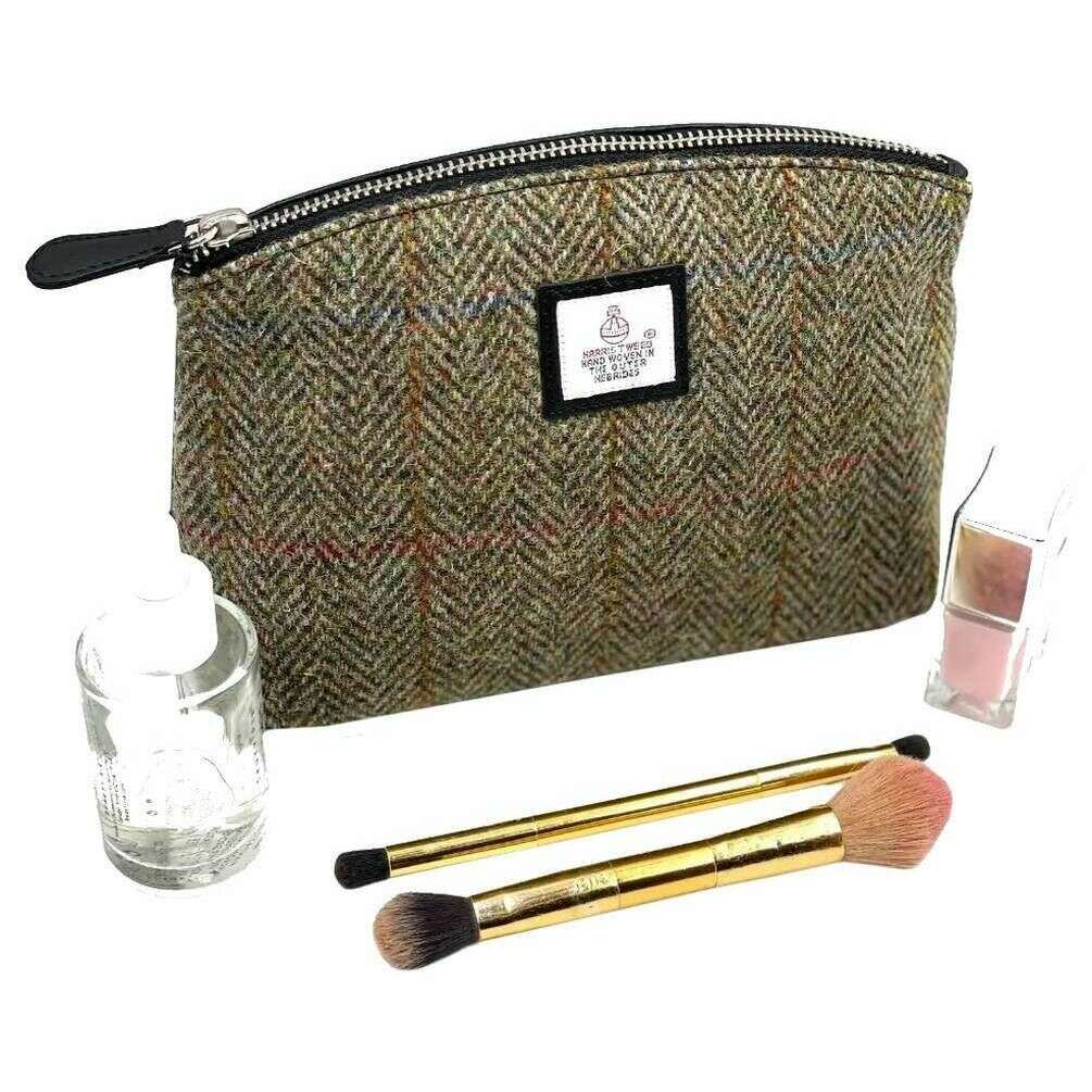Mała kosmetyczka Mcaccessori Harris Tweed - Country Green