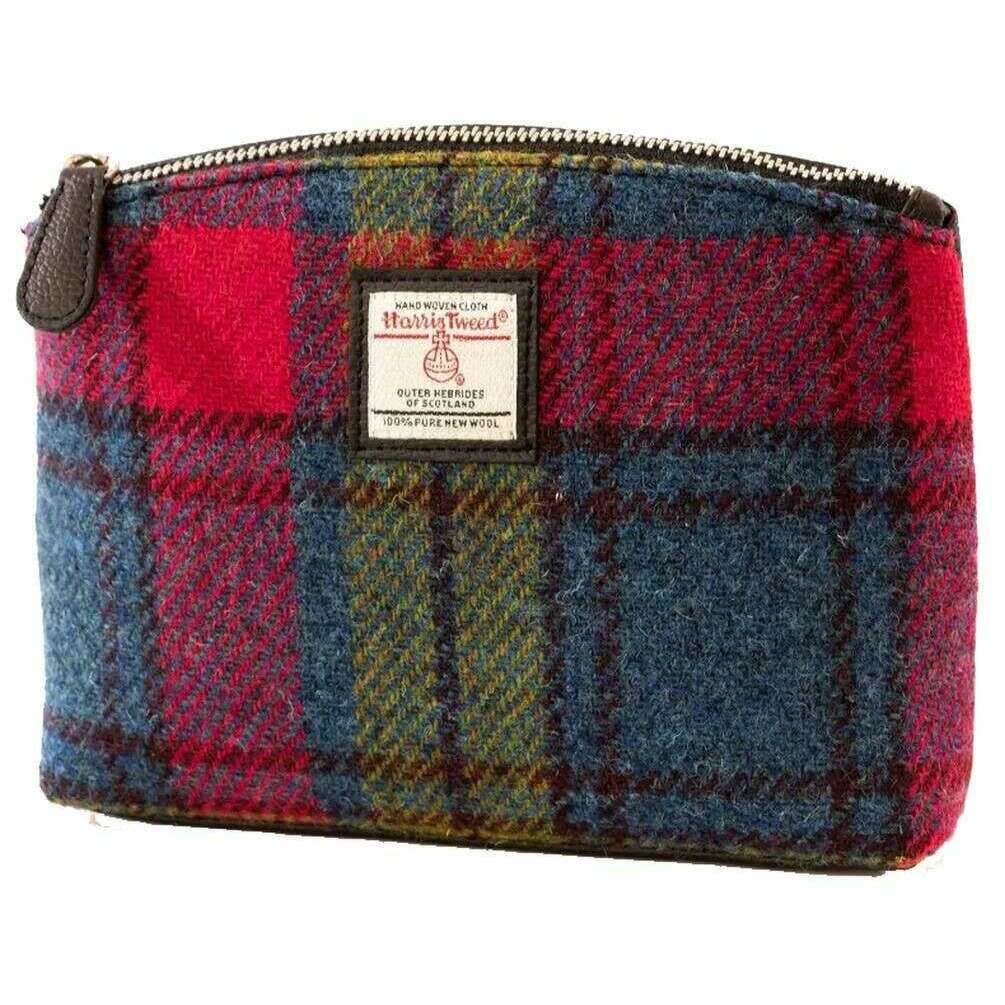 Mała kosmetyczka Mcaccessori Harris Tweed - różowa/niebieska