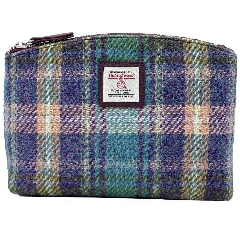 Mała kosmetyczka Mcaccessori Harris Tweed - fioletowo-zielona