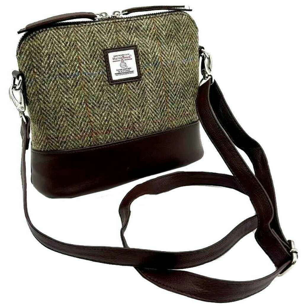 Kwadratowa torba na ramię Mcaccessori Harris Tweed - country green