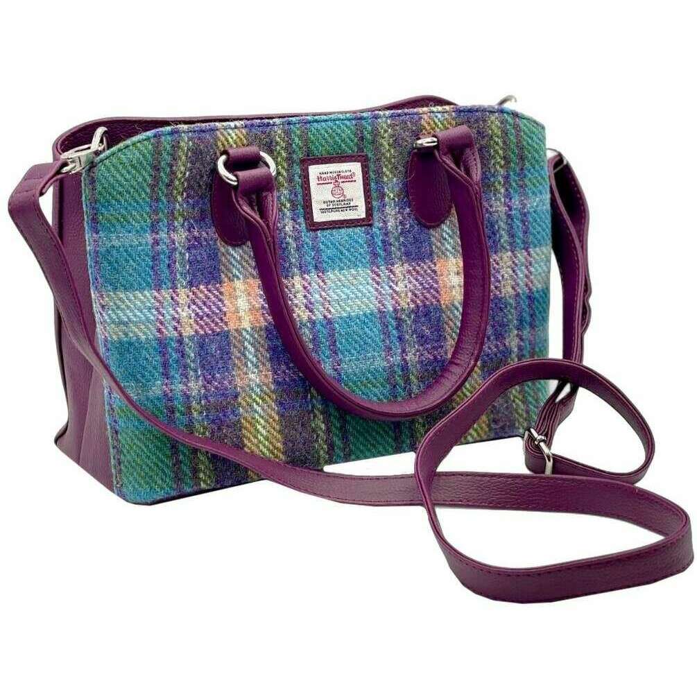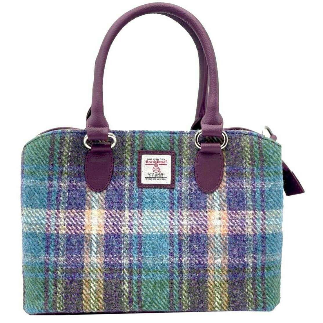 Torba Mcaccessori Harris Tweed z górnym uchwytem - zielony/fioletowy