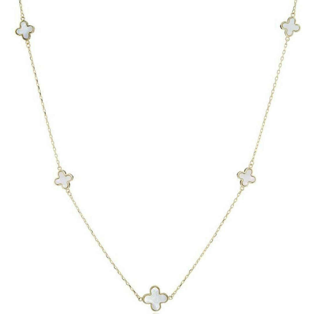 Naszyjnik z pięcioma kwiatami z masy perłowej Mark Milton - żółte złoto/biały