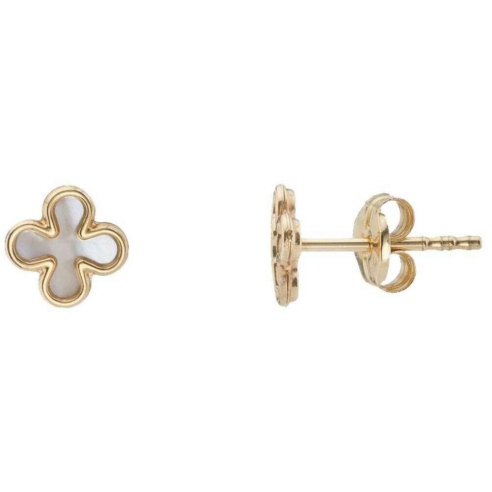 Kolczyki Mark Milton z masy perłowej koniczyny - żółte złoto/białe