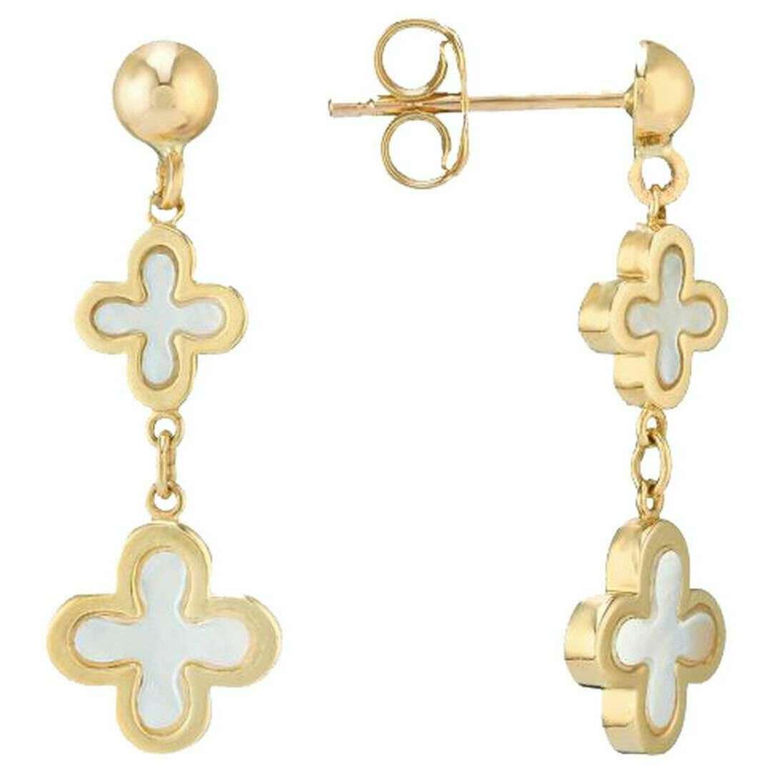 Kolczyki wiszące z masy perłowej i kwiatu Mark Milton - żółte złoto/białe