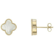 Kolczyki Mark Milton z masy perłowej i kwiatu - żółte złoto/białe