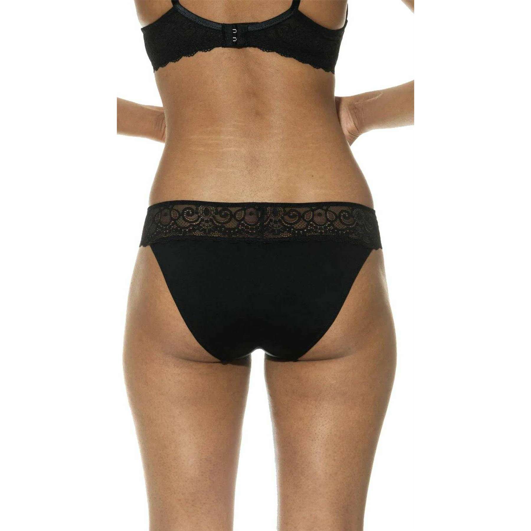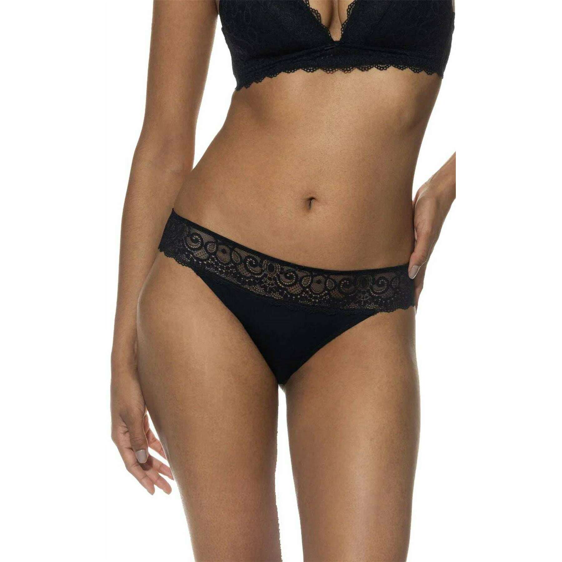 • Głęboki średni stan, płaski pas zapewniający wygodę, bawełniana wstawka w klinie, koronkowe detale