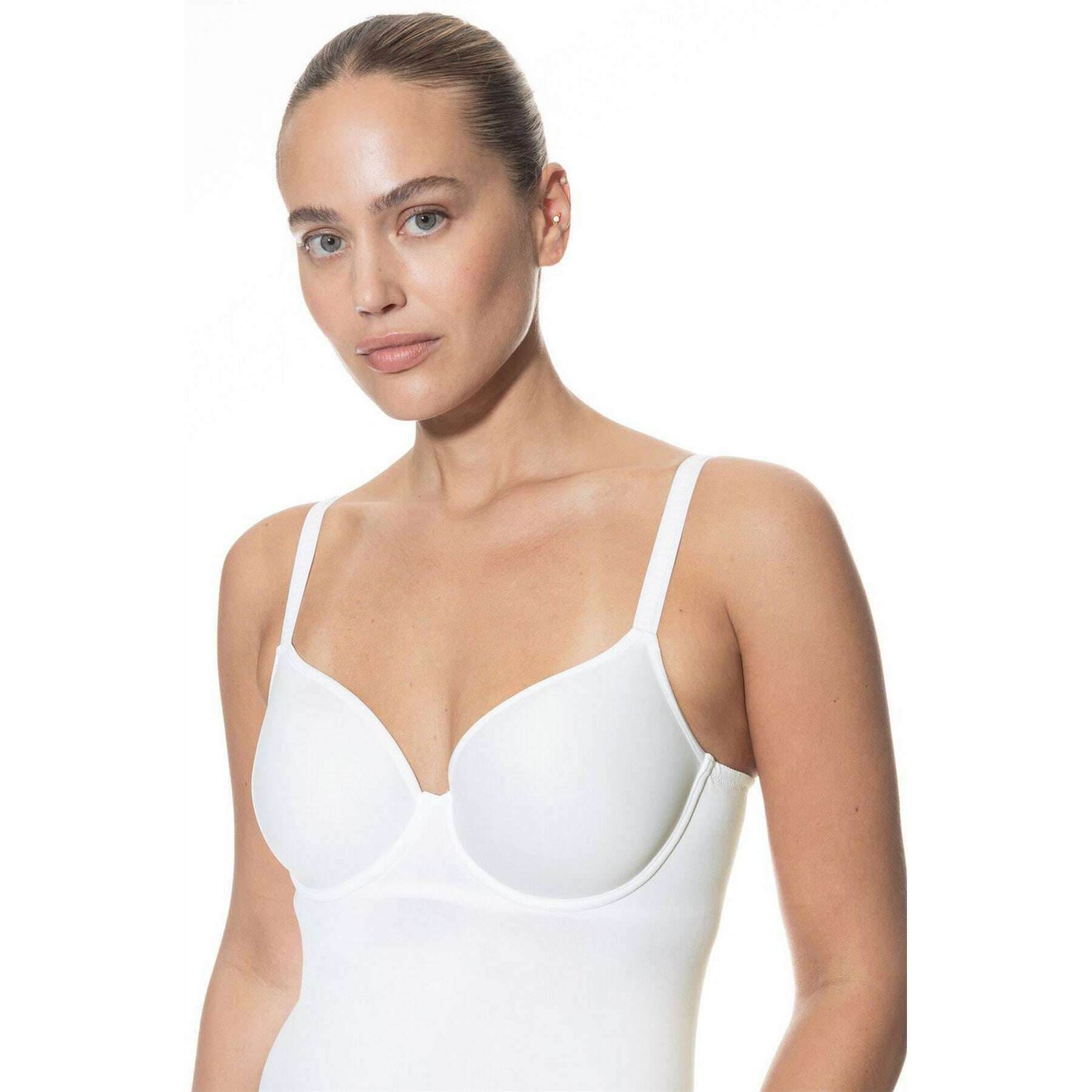 Wykonany z białej 50% wiskozy, 46% poliamidu i 4% elastanu, ten top typu joan marki Mey jest idealny dla kobiet i obowiązkowy. Również biała bielizna ma jednolity wzór. Aby zachować bieliznę w dobrym stanie, zaleca się pranie ręczne. Cała bielizna jest dostarczana w komplecie z oryginalnym opakowaniem. Top biustonoszowy Mey Joan - biały to basic, którego każda kobieta potrzebuje w swojej kolekcji, który zapewni wygodę i wsparcie. Wyposażone w fiszbiny zapewniające subtelne wsparcie i regulowane paski umożliwiające indywidualne dopasowanie w celu idealnego dopasowania. Ten top biustonosza został wykonany z oddychających, elastycznych i superlekkich materiałów, aby zapewnić najwyższy komfort. Świetnie nadaje się na każdą okazję, można ją nosić samodzielnie pod topem, aby uzyskać wyszczuplający wygląd.