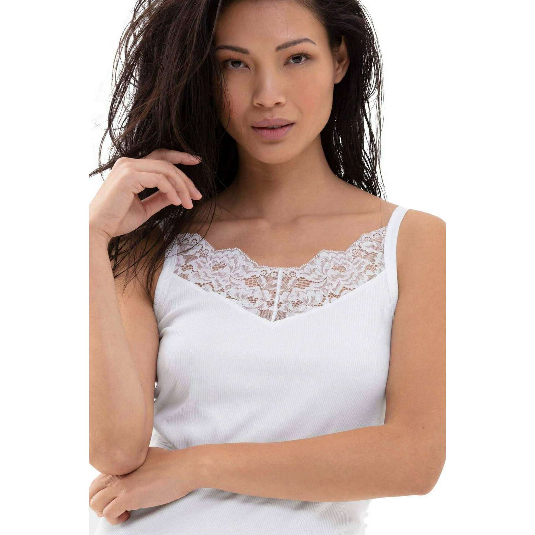 Koronkowy top spaghetti Mey z bawełny organicznej - biały