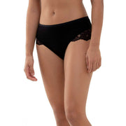 • Oeko-Tex Standard 100 , Certyfikat GOTS , Ekologiczna peruwiańska bawełna Pima , Miękki , Wysoki stan , Płaski pas , Miękkie rozcięcia na nogawkach , Bawełniana wstawka w klinie , Oddychająca , Przyjazna dla skóry , Koronka z tyłu i po bokach