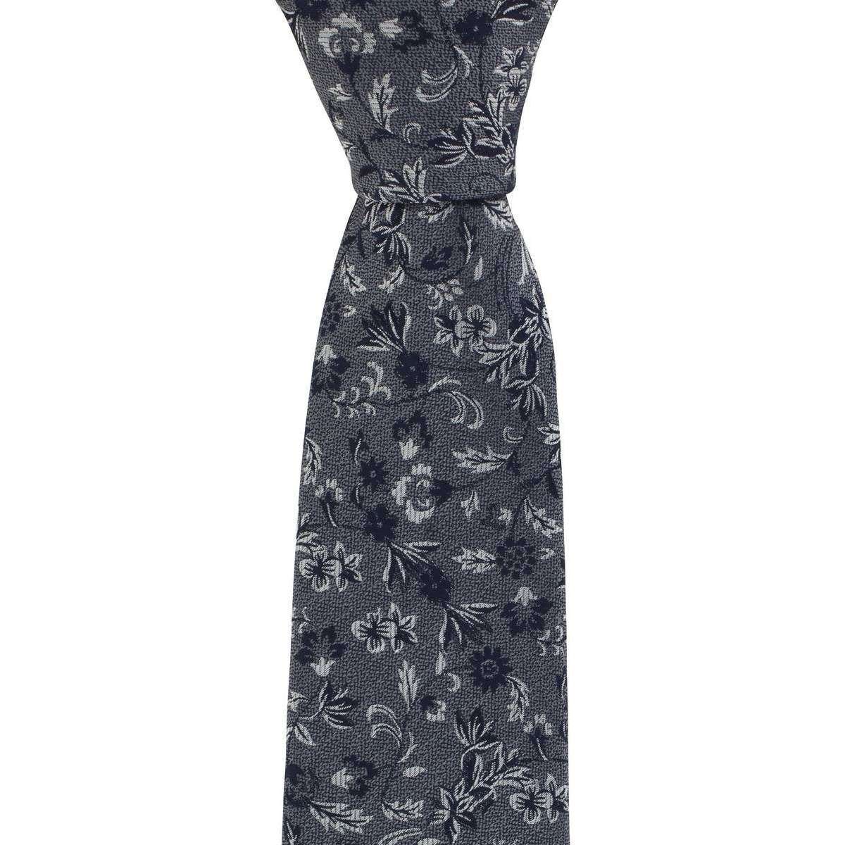 Michelsons of London Teksturowane kwiatowy krawat jedwabny - szary