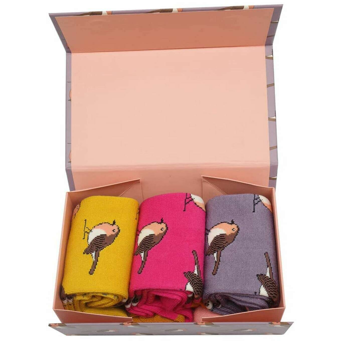 Pudełko na skarpetki Miss Sparrow London 3 Pack Robins - różowe/żółte/fioletowe