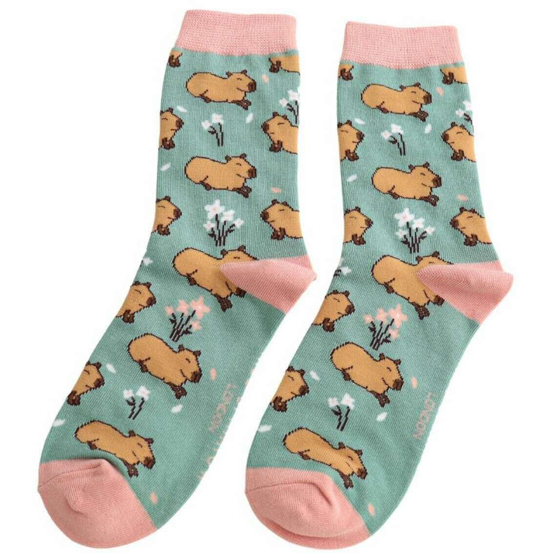 Skarpetki bambusowe Miss Sparrow London Cute Capybara - zielone