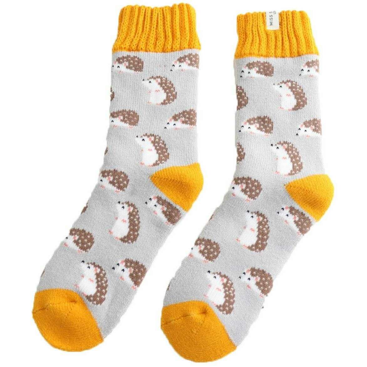 Skarpety zimowe Miss Sparrow London Cute Hedgehogs - srebrnoszare