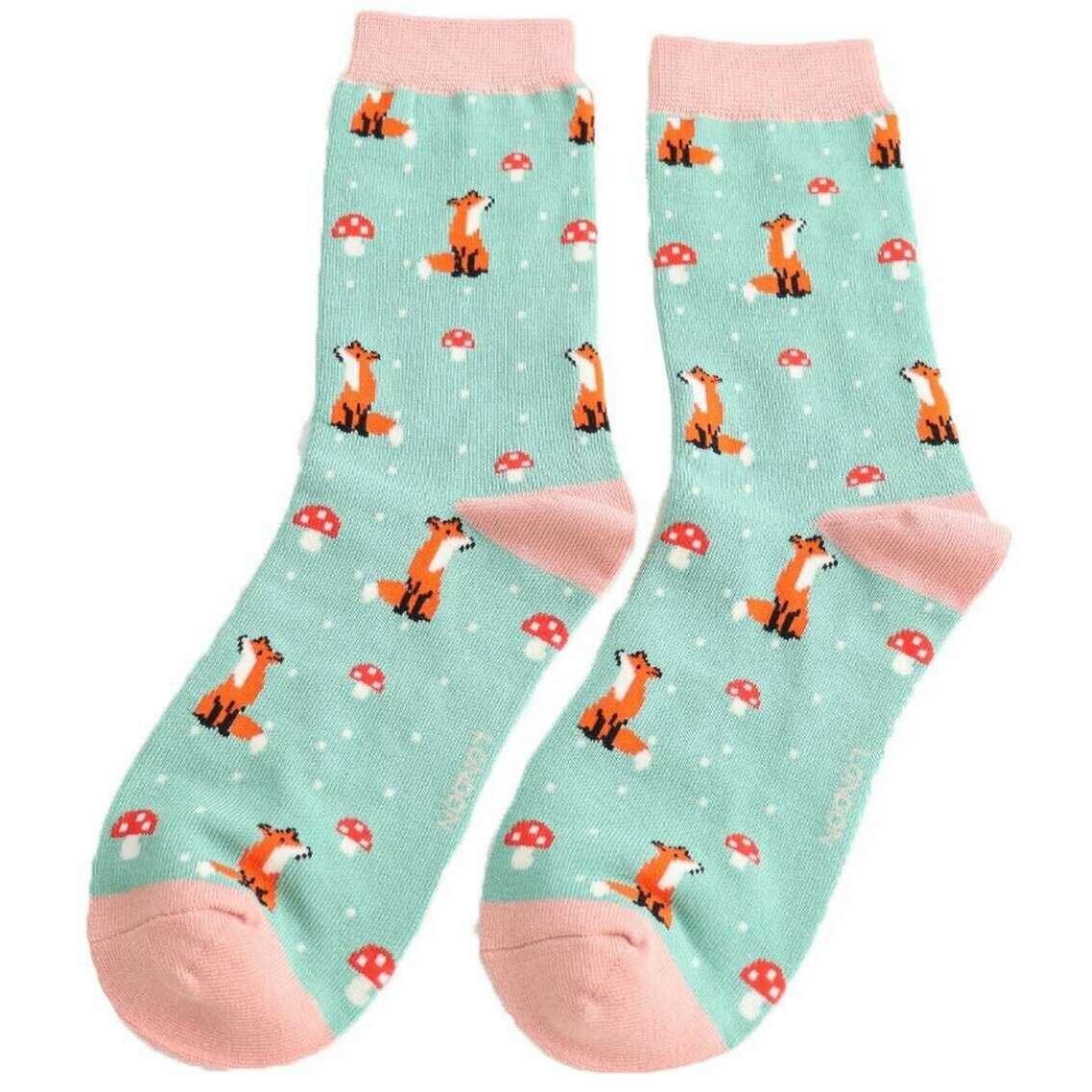 Skarpetki bambusowe Miss Sparrow London Fox i Toadstool - zielone