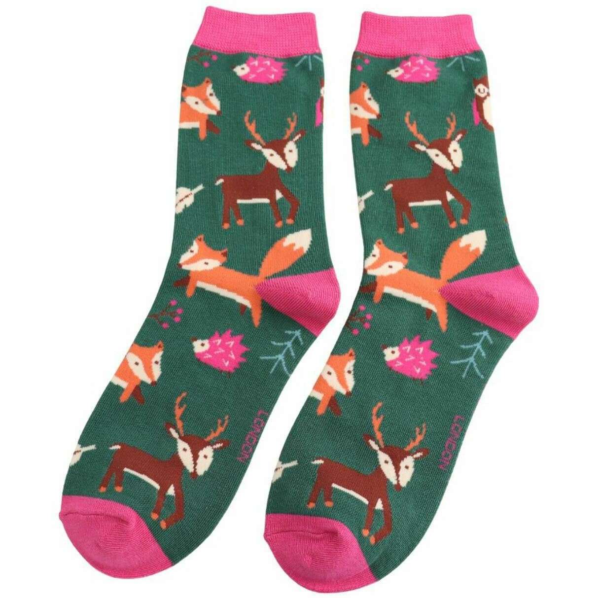 Skarpetki bambusowe Miss Sparrow London Woodland Animals - Ciemnozielone