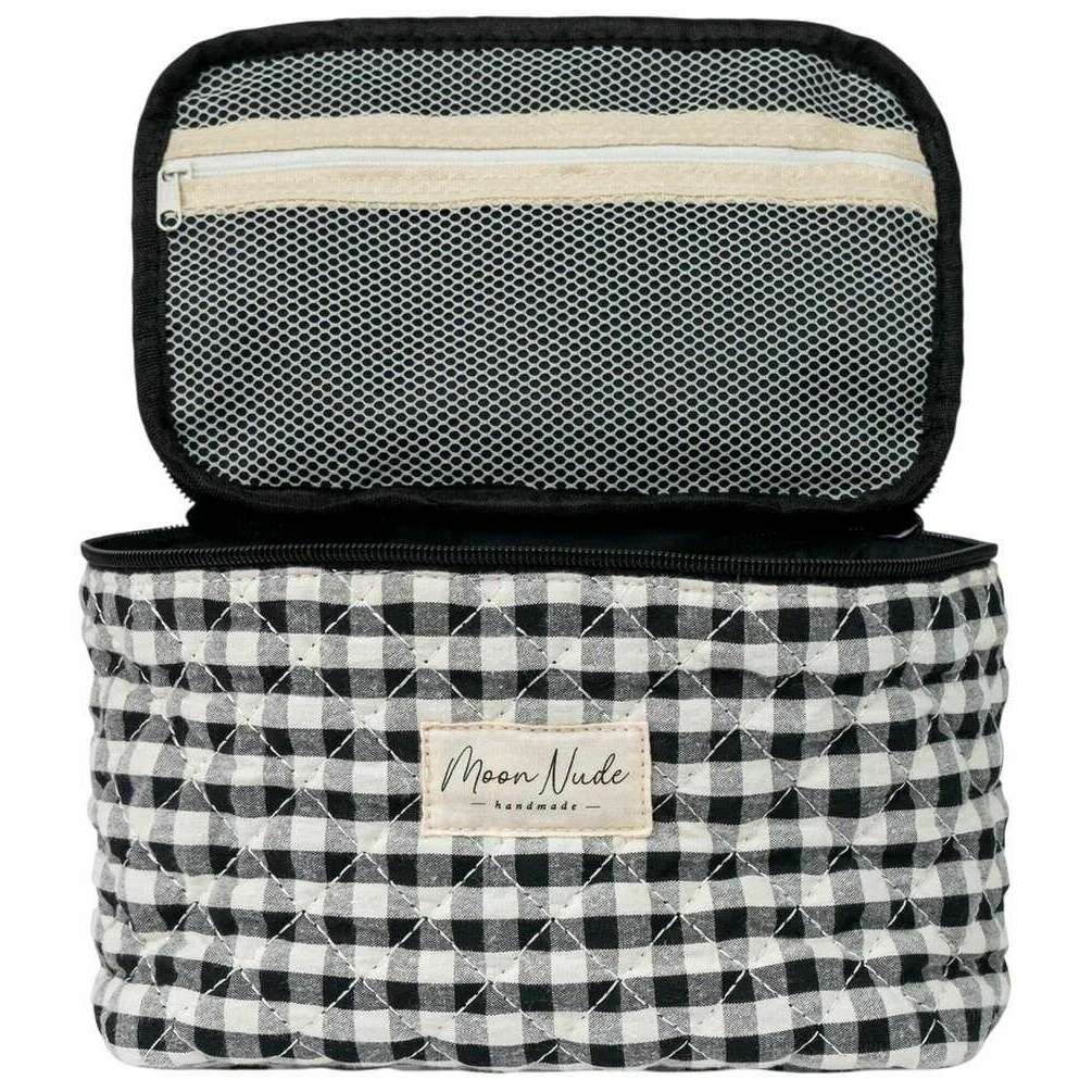 Ta czarno-biała klasyczna kosmetyczka damska, stworzona przez markę Moon Nude, jest wykonana w 100% z bawełny. Wymiary: 16 cm (wysokość) x 22 cm (szerokość) x 14 cm (głębokość). Zaleca się pranie ręczne w zimnej wodzie z dodatkiem łagodnego detergentu lub pranie w pralce na lewej stronie w programie dla tkanin delikatnych. aby utrzymać tę torbę w dobrym stanie. Wszystkie torby są dostarczane w komplecie z opakowaniami typu moon nude. Klasyczna kosmetyczka Moon Nude - czarno-biała jest absolutną koniecznością w podróży lub na co dzień. Ta kosmetyczka gwarantuje przechowywanie wszystkich kosmetyków do makijażu i pielęgnacji skóry w jednym miejscu, a jednocześnie jest stylowa i modna dzięki ręcznie robionemu pikowanemu projektowi.