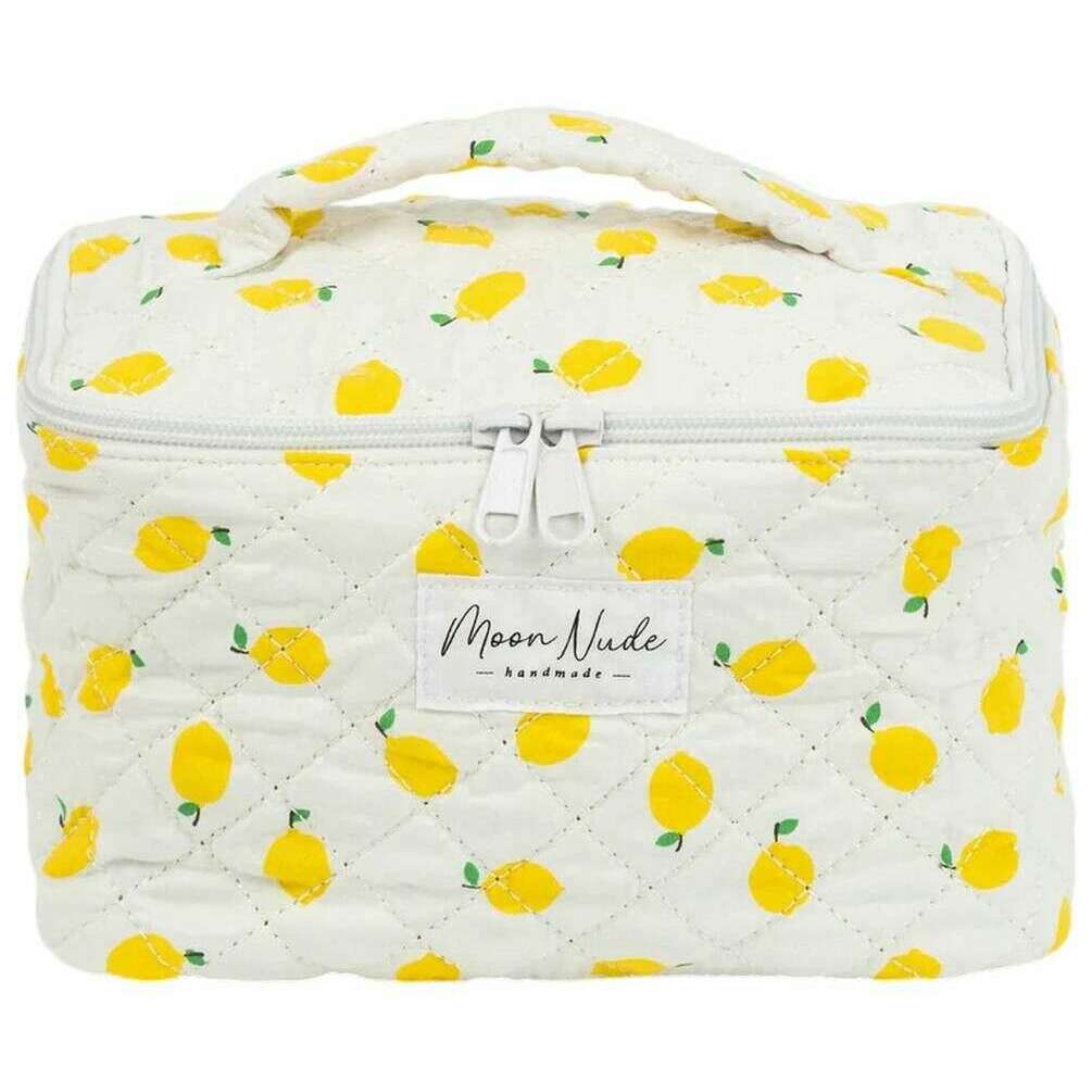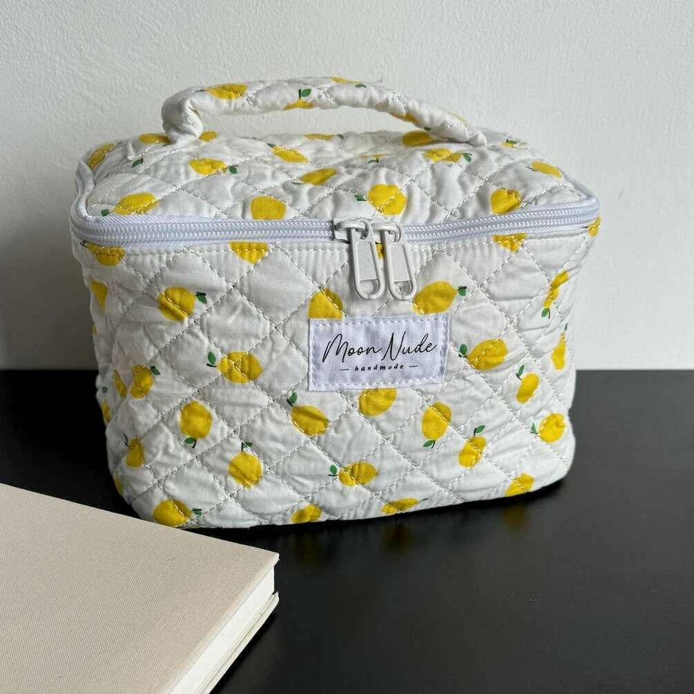 Damska kosmetyczka z lemoniadą marki Moon Nude wykonana jest w 100% z bawełny i jest dostępna w kolorze białym. Wymiary: 16 cm (wysokość) x 22 cm (szerokość) x 14 cm (głębokość). Zaleca się pranie ręczne w zimnej wodzie z dodatkiem łagodnego detergentu lub pranie w pralce na lewej stronie w programie dla tkanin delikatnych. aby utrzymać tę torbę w dobrym stanie. Wszystkie torby są dostarczane w komplecie z opakowaniami typu moon nude. Torebka kosmetyczna Moon Nude Lemonade - biało-żółta jest absolutną koniecznością w podróży lub na co dzień. Ta kosmetyczka gwarantuje przechowywanie wszystkich kosmetyków do makijażu i pielęgnacji skóry w jednym miejscu, a jednocześnie jest stylowa i modna dzięki ręcznie robionemu pikowanemu projektowi.