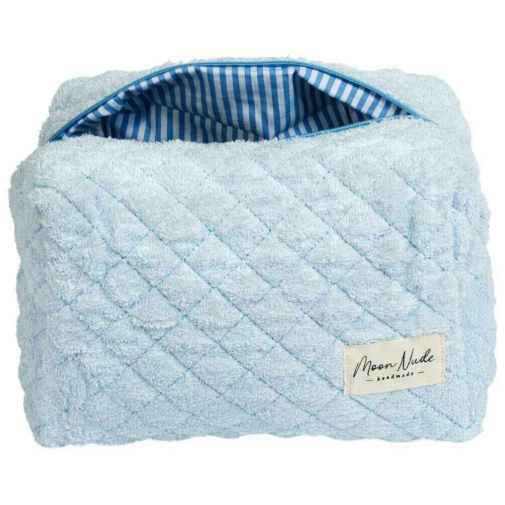 Ta niebiesko-biała, duża kosmetyczka damska, stworzona przez markę Moon Nude, jest wykonana w 100% z bawełny. Wymiary: 15 cm (wysokość) x 25 cm (szerokość) x 15 cm (głębokość). Zaleca się pranie ręczne w zimnej wodzie z dodatkiem łagodnego detergentu lub pranie w pralce na lewej stronie w programie dla tkanin delikatnych. aby utrzymać tę torbę w dobrym stanie. Wszystkie torby są dostarczane w komplecie z opakowaniami typu moon nude. Duża kosmetyczka Moon Nude Sky - niebiesko-biała to absolutny must-have w Twoim pokoju lub codziennej torbie. Ta kosmetyczka gwarantuje, że wszystkie najczęściej używane produkty będą przechowywane razem i bezpieczne, a jednocześnie będzie stylowa i szykowna dzięki ręcznie robionemu pikowanemu projektowi.