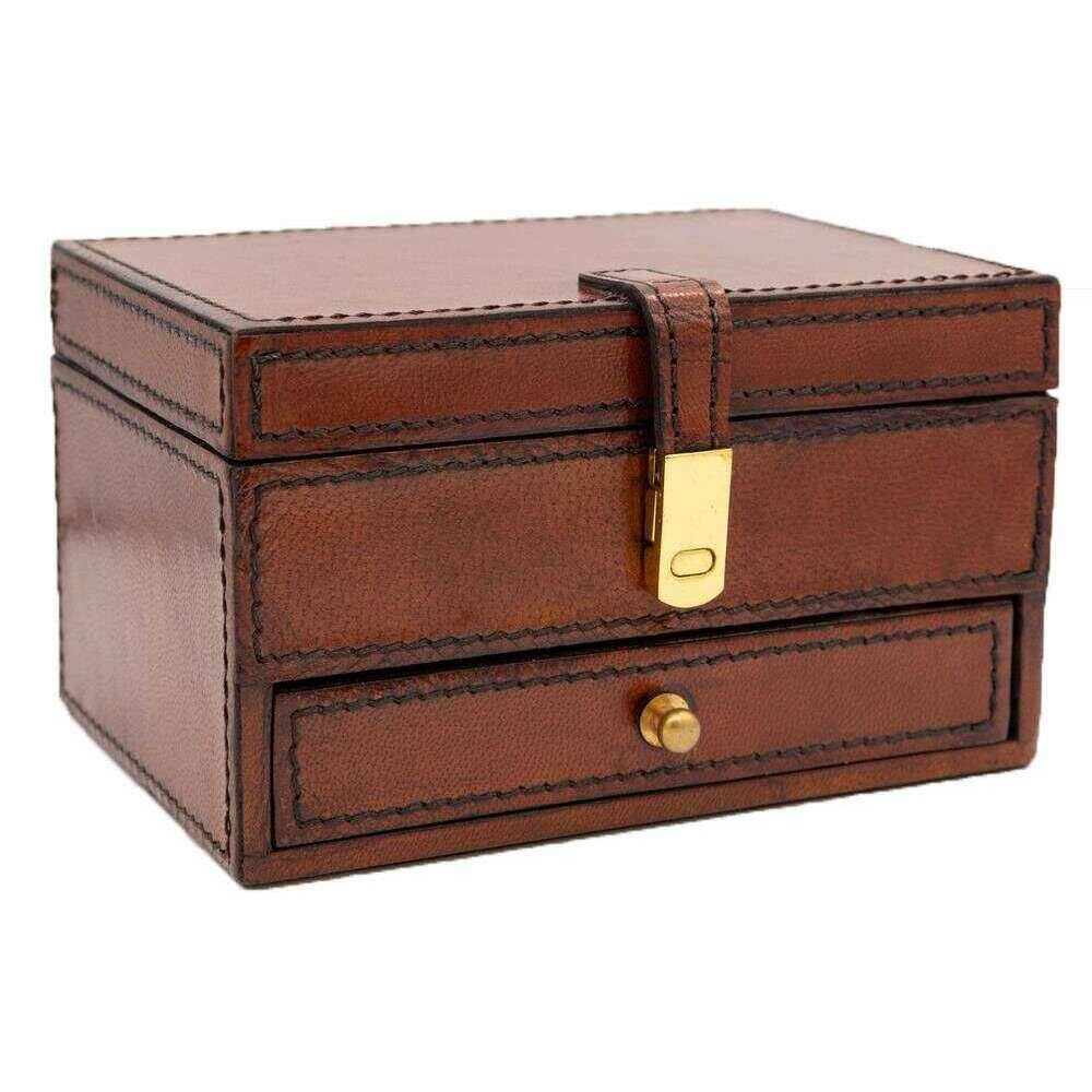 Przyniesiona przez Brand Orton West, to brązowe damskie szuflady biżuterii jest wykonane ze 100% skóry. Mierzy 9 cm (wysokość) x 15,5 cm (szerokość) x 10,5 cm (głębokość). Wszystkie pudełka biżuterii są wyposażone w opakowanie Orton West. Skórzane szuflady Orton West - Brown ma ciemne szwy na pięknym skórzanym materiale, aby dodać głębokość i vintage dotknięcie. To pudełko łączy praktyczność z elegancją ze względu na trzy sekcje doskonałe do przechowywania całej oszałamiającej biżuterii, podczas gdy dodatkowa szuflada oferuje jeszcze więcej przechowywania do organizowania. Wykończone złotym sprzętem uzupełnia ten ponadczasowy projekt.