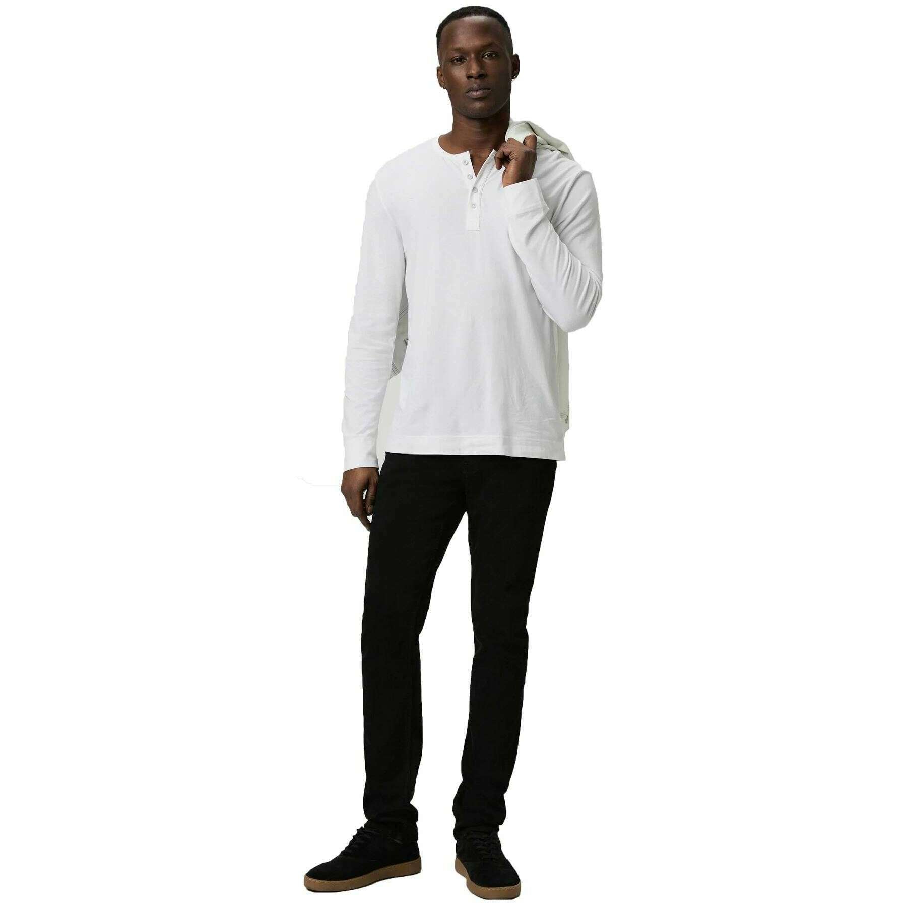 Te męskie dżinsy Lennox slim marki PAIGE są wykonane w 54% ze sztucznego jedwabiu, 23% bawełny, 22% poliestru i 1% spandexu i są dostępne w kolorze czarnym. Również dżinsy w kolorze czarnym Shadow mają jednolity wzór. Zaleca się wywrócenie odzieży na lewą stronę, użycie zimnej wody w delikatnym cyklu i powieszenie na sucho, aby utrzymać dżinsy w dobrym stanie. Wszystkie dżinsy są wyposażone w metki Paige. Dżinsy PAIGE Lennox Slim Jeans – Black Shadow zostały wykonane ze słynnego dżinsu Trans, który jest bardzo popularny i lubiany. Tę wszechstronną parę o dopasowanym kroju, zwężającą się od kolana w dół, można stylizować na nieskończone możliwości i warto ją mieć w swojej kolekcji. Wykonane z bardzo rozciągliwego materiału zapewniają najwyższy komfort i doskonałe noszenie na co dzień.