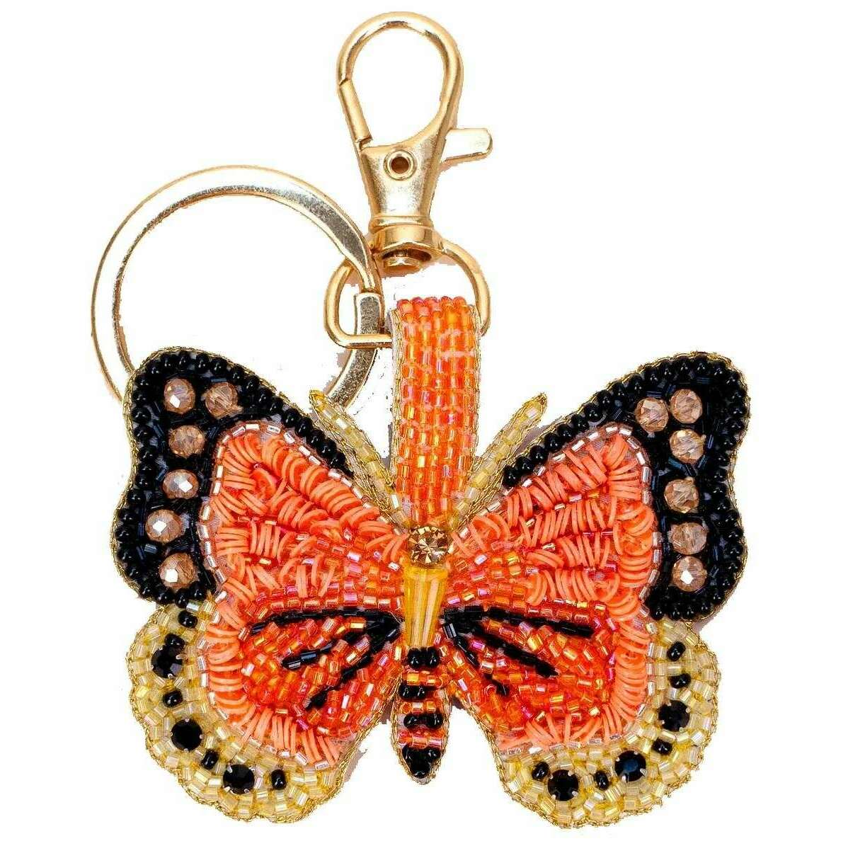 Brelok z koralikami w kształcie motyla Powder Bonny - kremowy/pomarańczowy/czarny