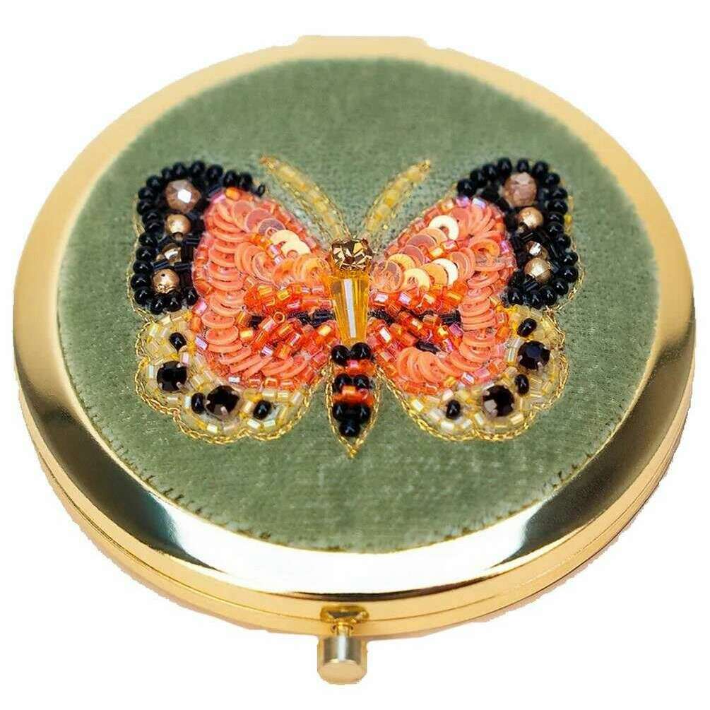 Przedstawiamy damskie lusterko z haftowanym motylkiem firmy Powder, wykonane w 100% z aksamitu poliestrowego i metalu w kolorze zielonym/różowym/czarnym. Wymiary: 7,5 cm (wysokość) x 7 cm (szerokość) x 1 cm (głębokość). Wszystkie kompakty są dostarczane w komplecie z pudrem. Pudrowe haftowane lusterko Bonny Butterfly w kolorze zielonym/różowym/czarnym to obowiązkowy element Twojej torebki, pełniący funkcję niezbędnego dodatku damskiego, bez którego nie będziesz mogła się obejść. Kompaktowe i pięknie ozdobione misternymi haftowanymi detalami, to lustro nie tylko odzwierciedla piękno wewnątrz, ale także wygląda wspaniale na zewnątrz.