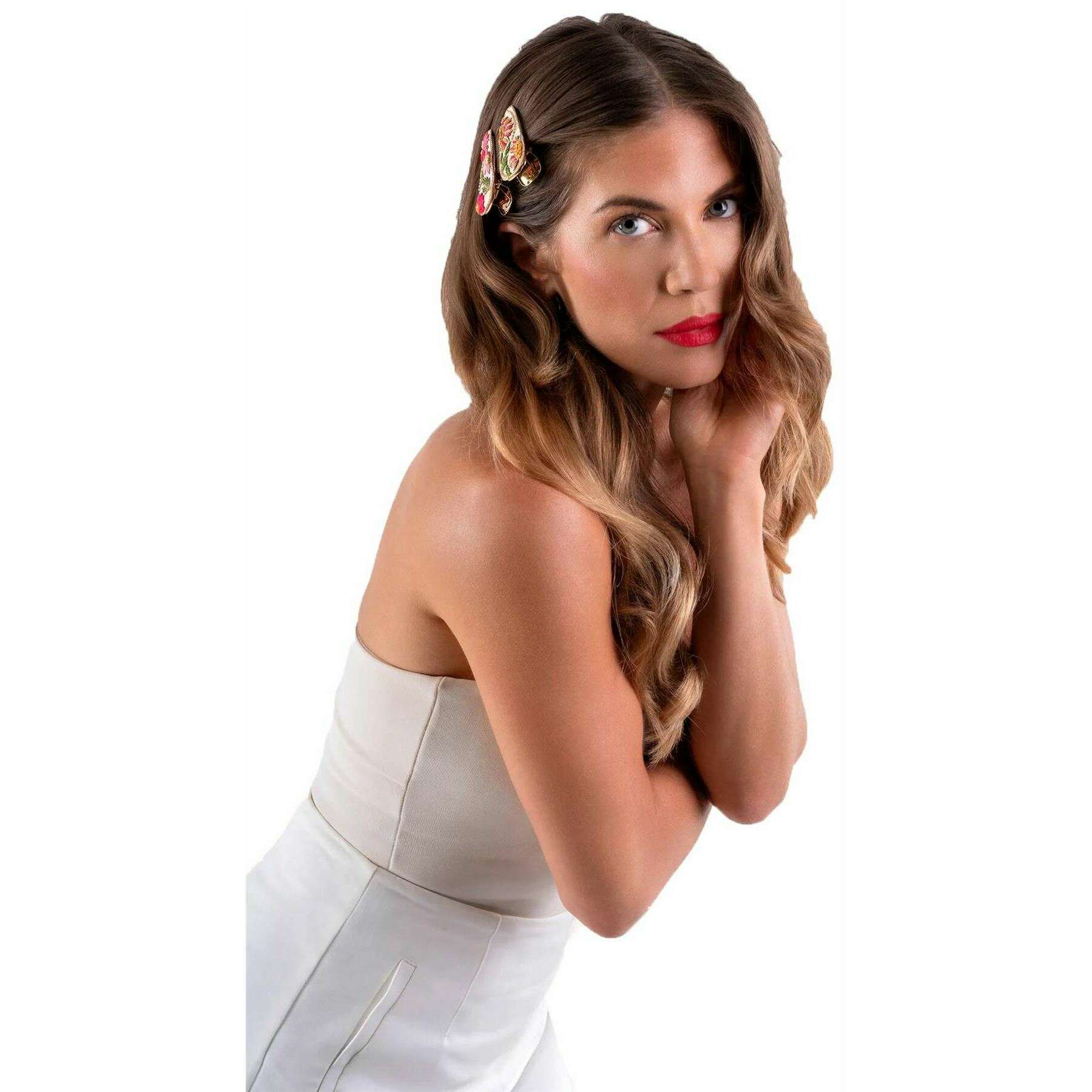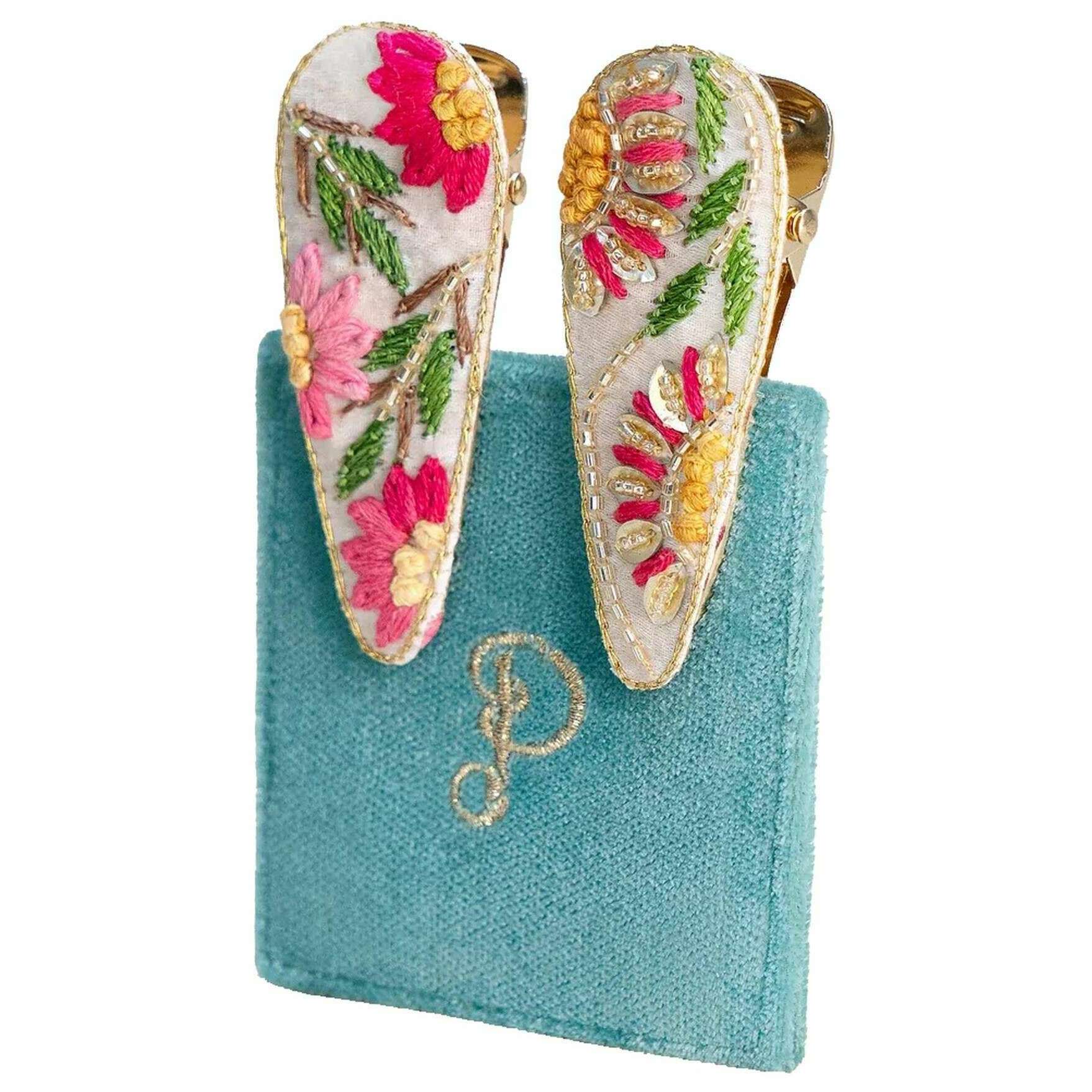 Spinki do włosów Powder Flora - Biały/Różowy/Zielony/Niebieski