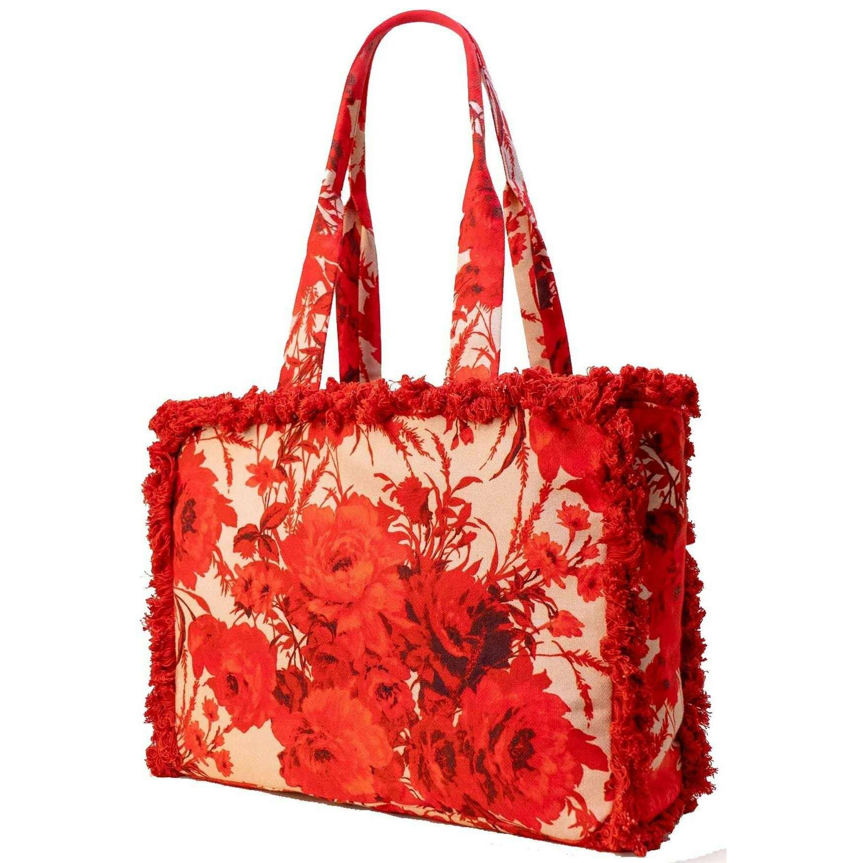 Torba na ramię Powder Rouge Blooms z frędzlami - czerwony/beżowy