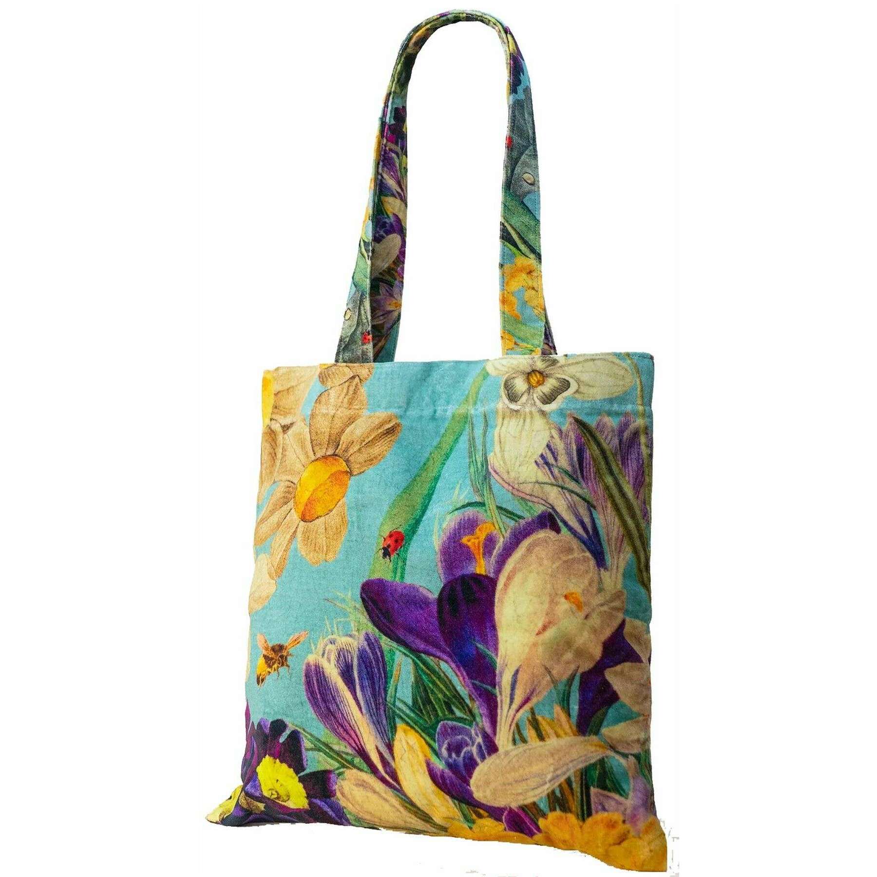 Aksamitna torba Powder Spring Flora - niebieska/fioletowa/beżowa