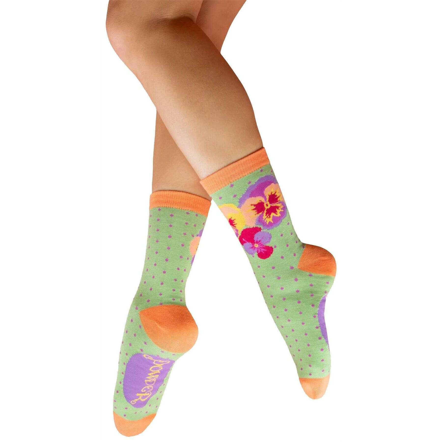 Skarpetki do kostki Powder Spring Pansies - zielone/pomarańczowe/fioletowe