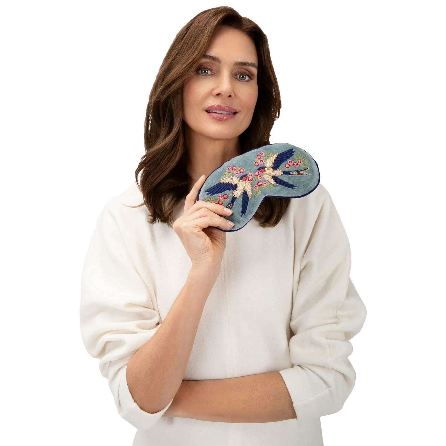 Ta damska maska ​​lawendowa lawendowa maska ​​oczu proszkiem jest wykonana ze 100% aksamitu poliestrowego i jest prezentowana na niebiesko. Mierzy 9,5 cm (wysokość) x 20 cm (szerokość). Wszystkie maski do oczu są kompletne z tagami proszkowymi. Poszukiwanie proszku połyka lawendową maskę oczu - Ice Blue sprawia, że ​​sen jest o wiele bardziej luksusowy. Oszałamiająco miękkie aksamitne wykończenie będzie relaksujące i wygodne, a elastyczna opaska idealnie zabezpieczy go do głowy, aby uzyskać spokojne zużycie, podczas gdy aromat lawendy z wewnętrznych nasion lawendy wyśle ​​ci snu. Wzór został umiejętnie haftowany oszałamiającymi detalami, co czyni go akcesorium, które będziesz chciał się pochwalić.