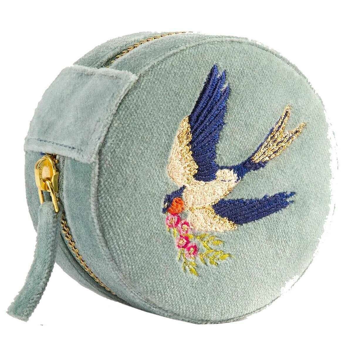 Poszukiwanie pudełka połyka okrągłe aksamitne pudełko biżuterii - Ice Blue
