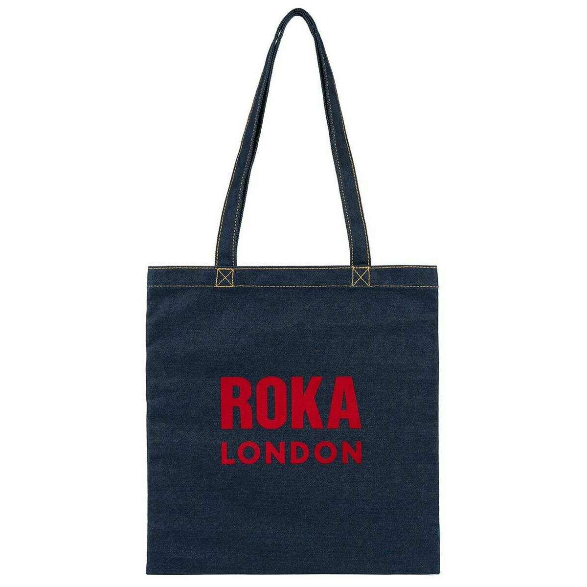 Roka Notting Hill Small Tote Bag - Dark Wash Denim Blue/Red
