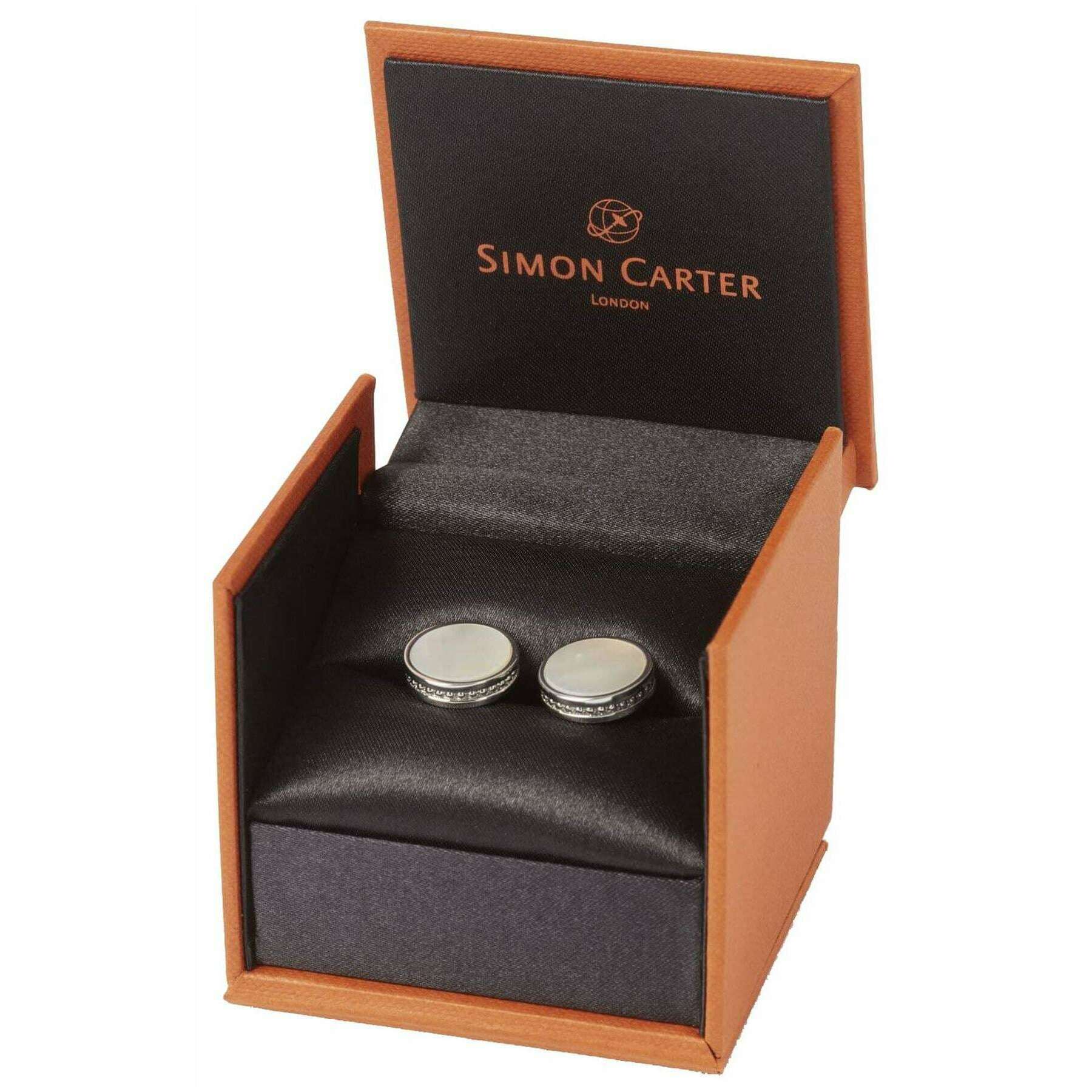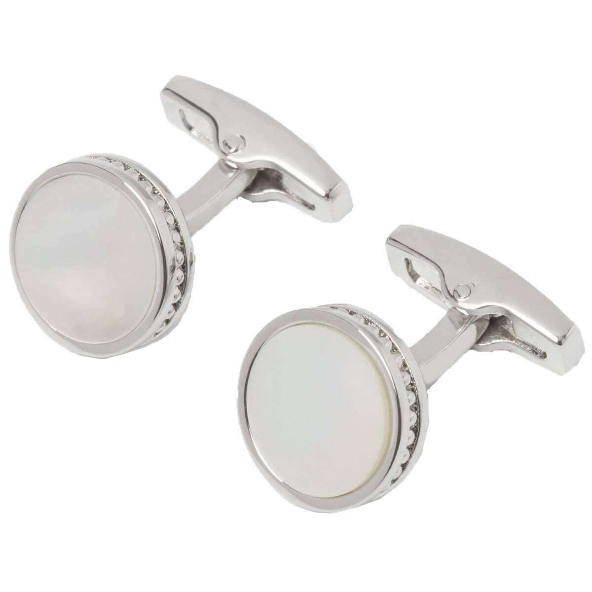 Spinki do mankietów Simon Carter Edward z masy perłowej - białe/srebrne