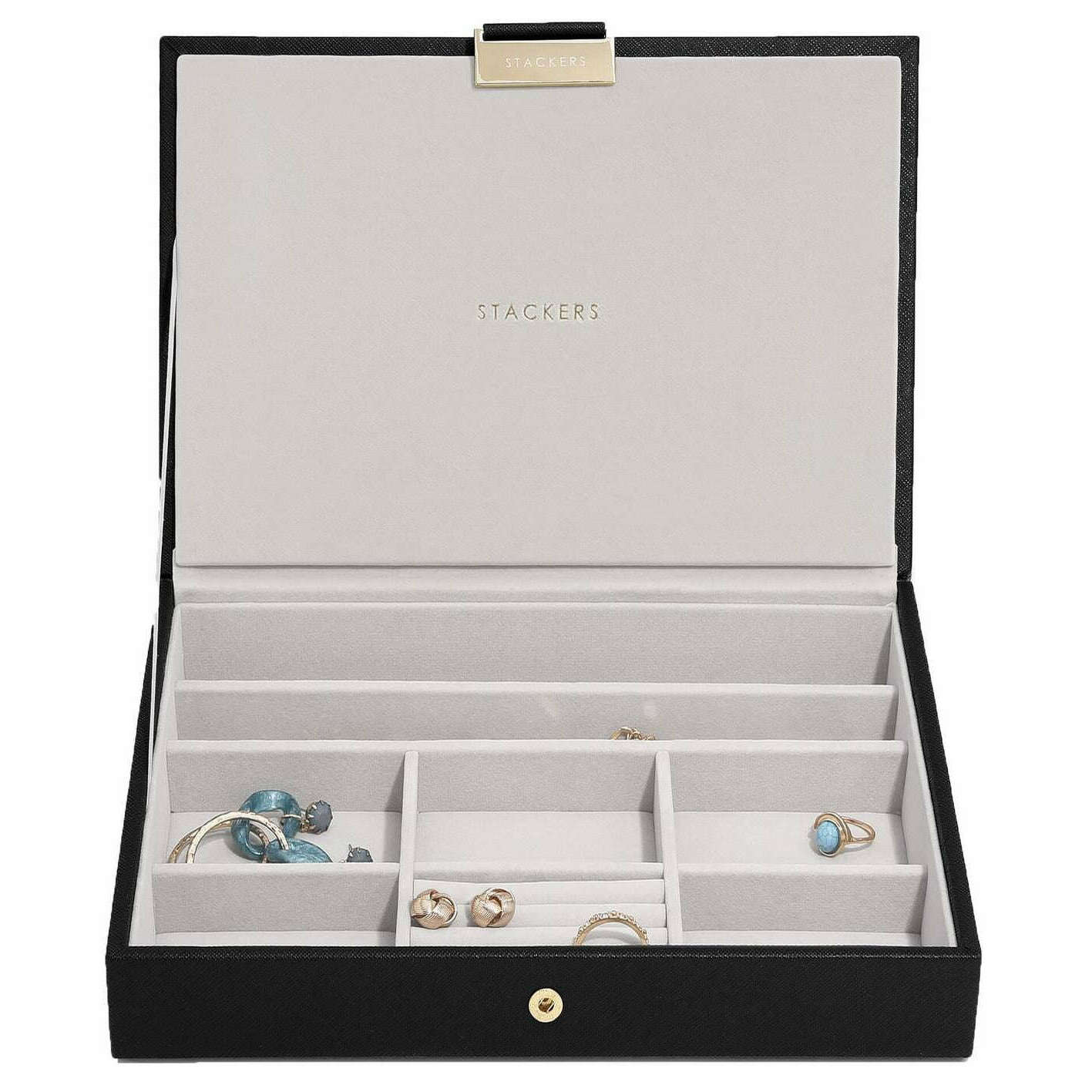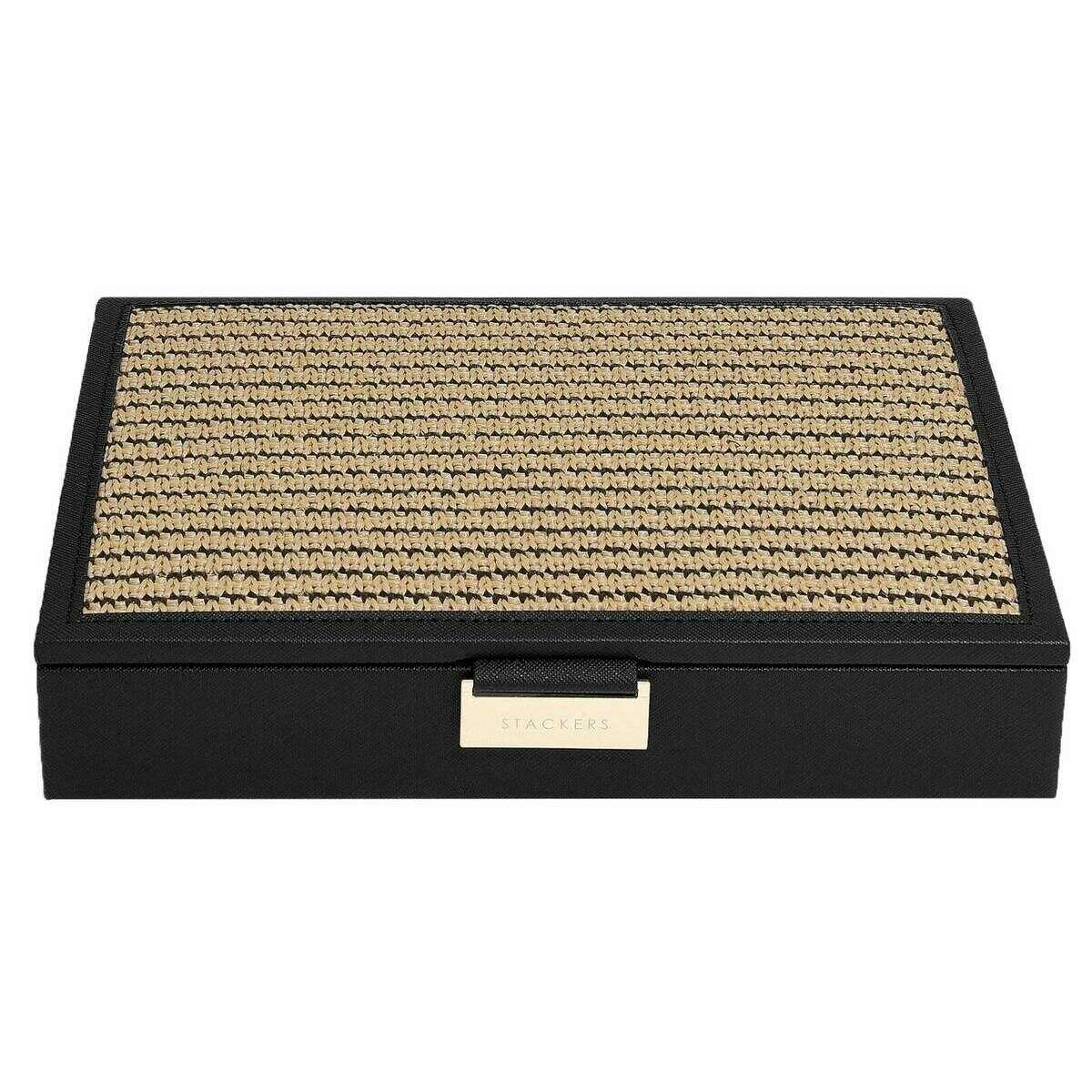 Klasyczne wieczko do pudełka na biżuterię Stackers - czarna rafia