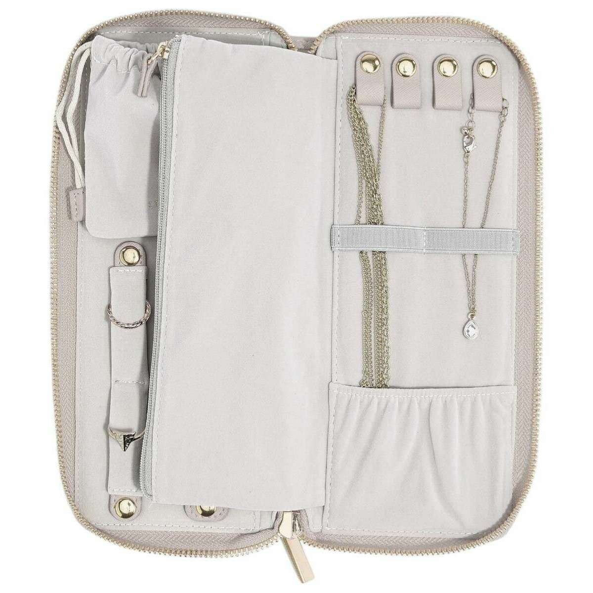 Wykonana ze sztucznej skóry i aksamitu, ta klasyczna, średnia torebka damska w kolorze taupe, autorstwa projektanta Stackers. Wymiary: 3 cm (wysokość) x 24,5 cm (szerokość) x 10,5 cm (głębokość). Aby zachować pudełko na biżuterię w dobrym stanie, zaleca się wycieranie go do czysta. Wszystkie pudełka na biżuterię są dostarczane w komplecie z opakowaniami typu stacker. Średnia rolka z biżuterią Stackers Classic - Taupe Beige składa się z różnych części, które pozwolą Ci uporządkować biżuterię w dowolnym miejscu i czasie. Całość zabezpieczona zamkiem błyskawicznym, dzięki czemu możesz mieć pewność, że Twoje ulubione elementy biżuterii będą zawsze bezpieczne w środku. Ta rolka ma miejsce na maksymalnie cztery naszyjniki lub bransoletki, posiada uchwyt na kolczyki i małą aksamitną torebeczkę, w której można bezpiecznie przechowywać małe i luźne przedmioty. Cechą szczególną tego etui na akcesoria jest możliwość przechowywania ulubionych naszyjników i bransoletek bez konieczności ich plątania. Jest to idealny organizer na biżuterię, który warto mieć przy sobie w podróży lub po prostu utrzymując porządek w domu.