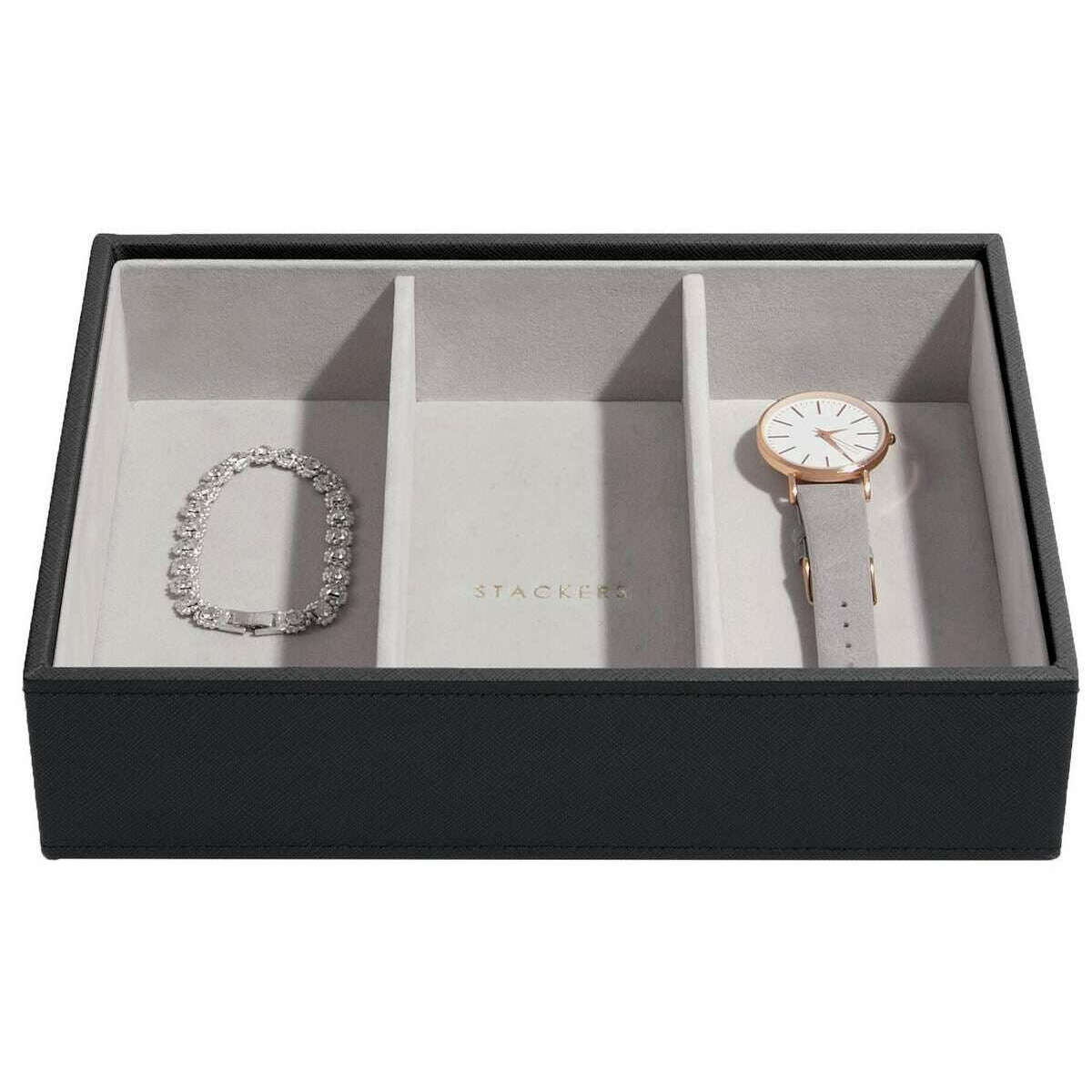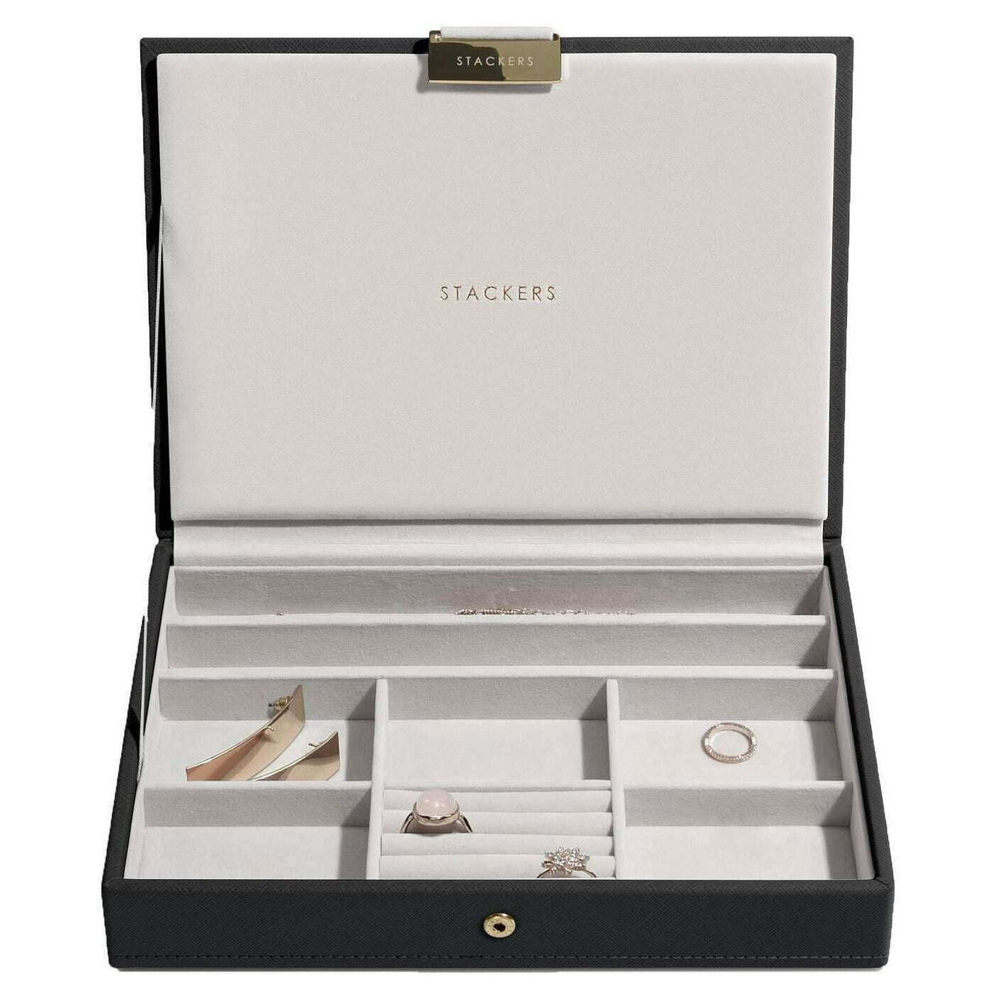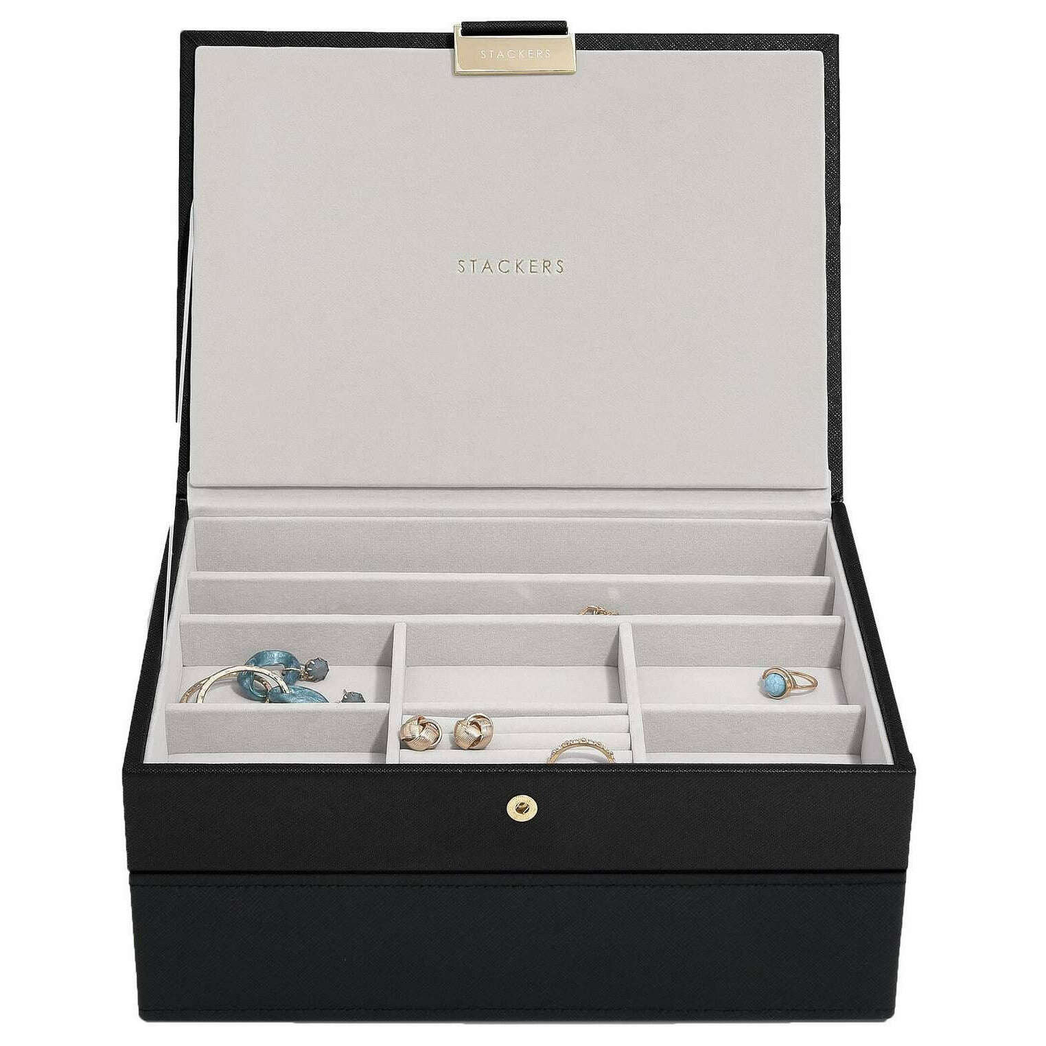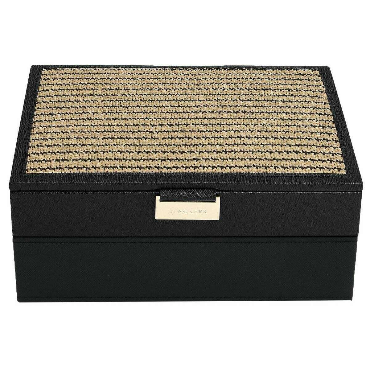 Stackers Klasyczny zestaw 2 pudełek na biżuterię - czarna rafia