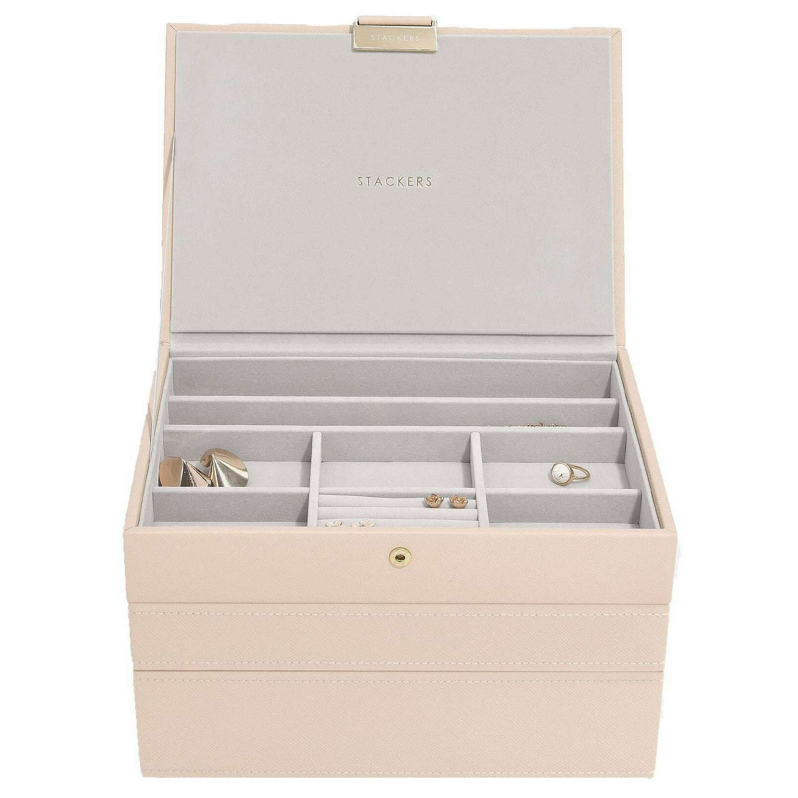 Stackers Klasyczny zestaw 3 pudełek na biżuterię - różowa rafia