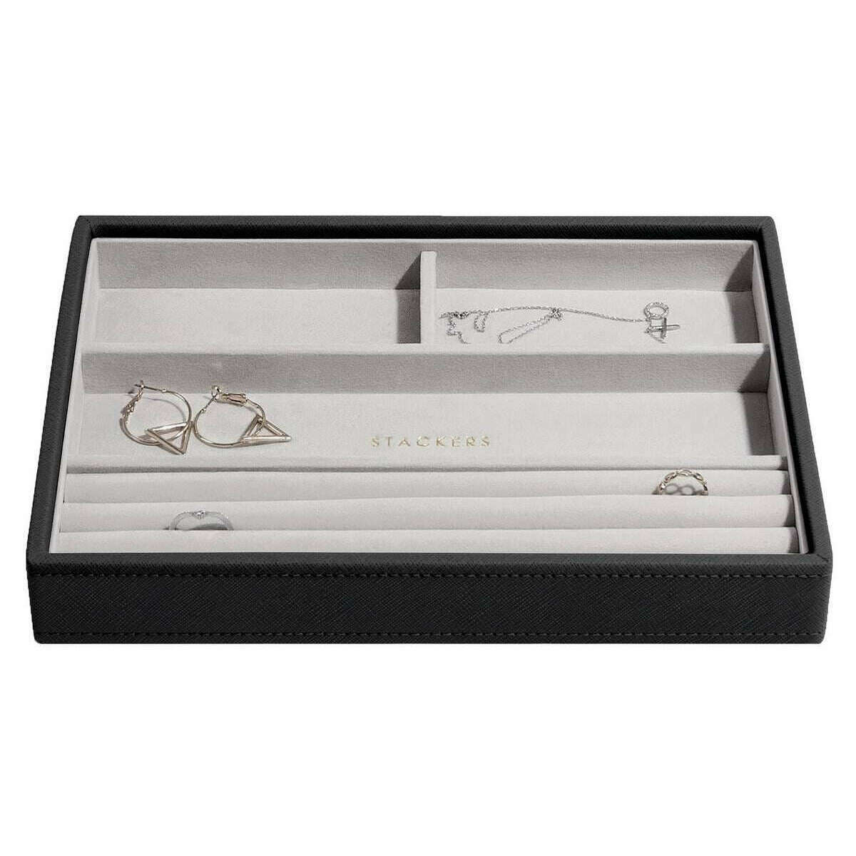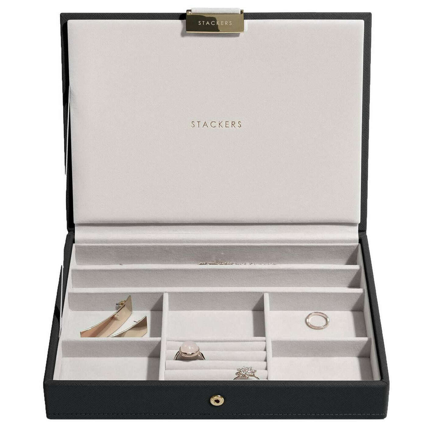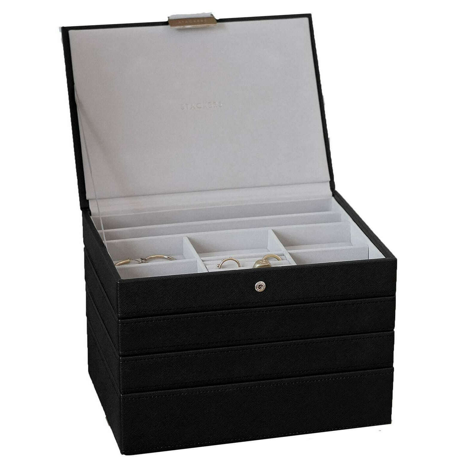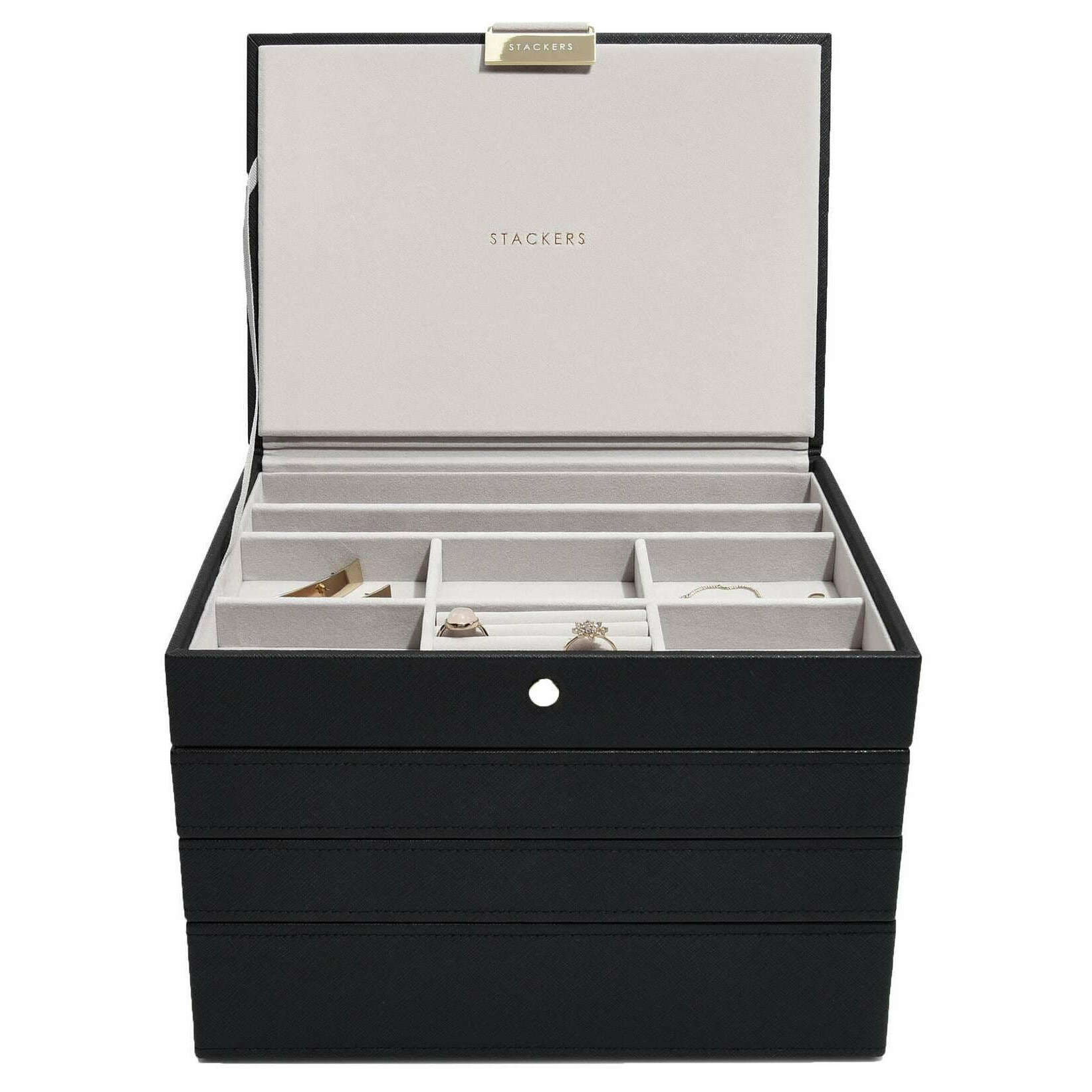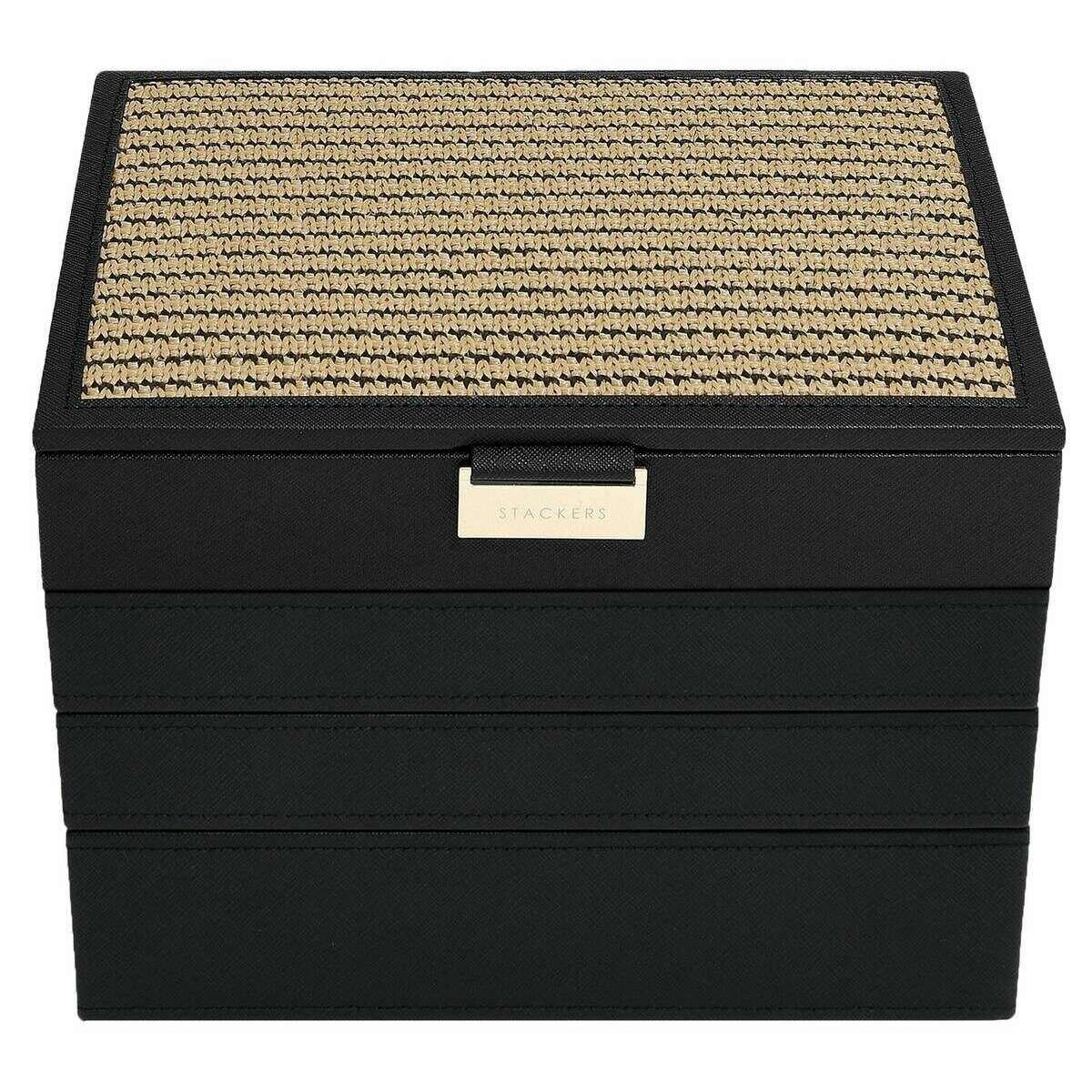 Stackers Klasyczny zestaw 4 pudełek na biżuterię - czarna rafia