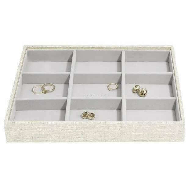 Ta klasyczna tajemnica kobiet została wykonana ze sztucznej skóry i lnianej, zaprezentowanej w beżowym kolorze i pochodzi ze stosów marki. Mierzy 3,7 cm (wysokość) x 25 cm (szerokość) x 18 cm (głębokość). Wszystkie pudełka biżuterii są kompletne w opakowaniu stosów. Klasyczna taca Stackers Classic - owsiana/lniana beżowa została sprytnie stworzona i zaprojektowana do doskonale utrzymywania wszystkich kolczyków. Można go dodać do każdej innej klasycznej tacki biżuterii, aby stworzyć pudełko biżuterii lub można ją używać samodzielnie. Nie będziesz musiał iść na kompromis w zakresie organizacji.