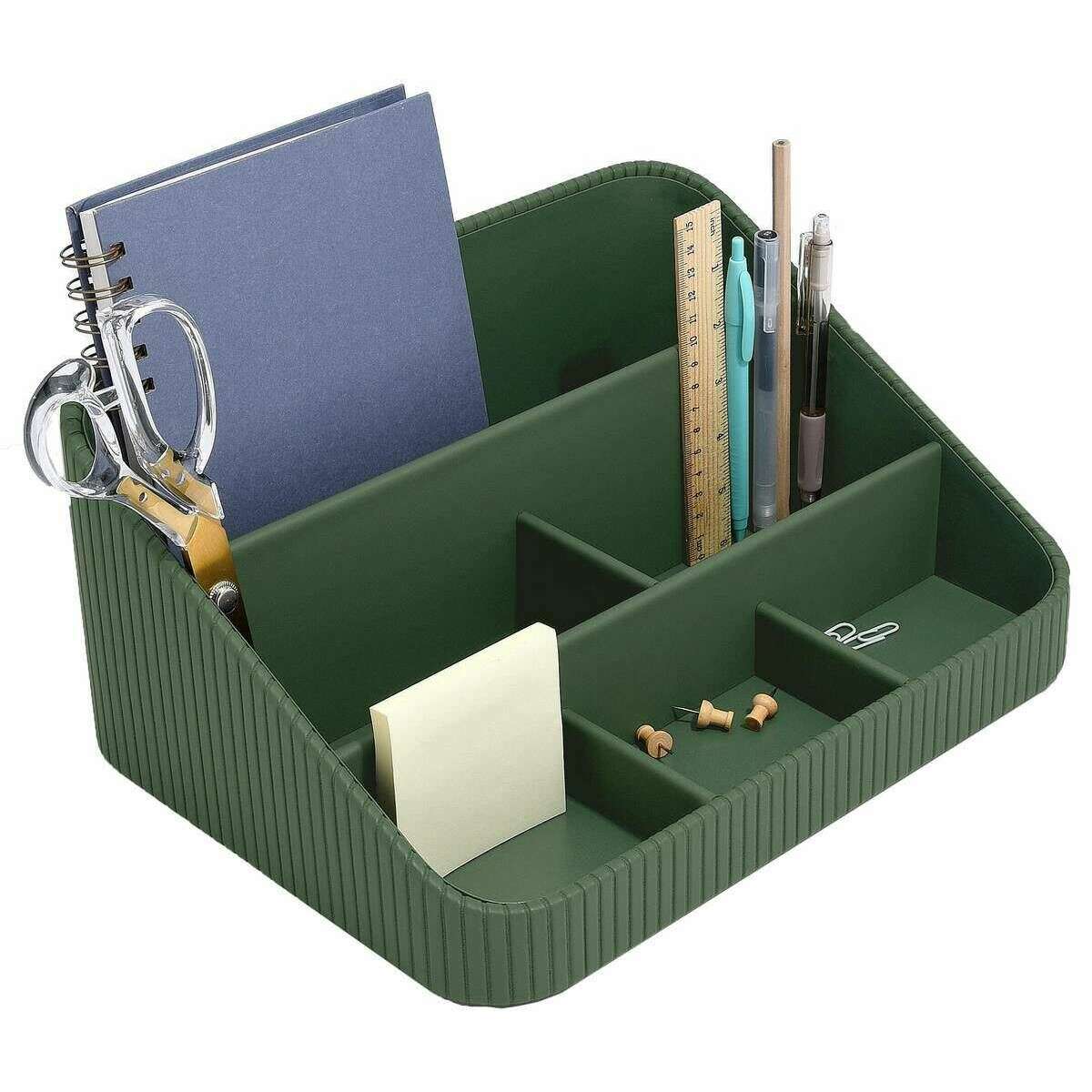Ten dobrze wykonany damski organizer na biurko firmy Stackers jest dostępny w szmaragdowo-zielonym kolorze i wykonany ze sztucznej skóry. Wymiary: 14,5 cm (wysokość) x 24,5 cm (szerokość) x 32,5 cm (głębokość). Wszystkie akcesoria do biurek są dostarczane w komplecie z opakowaniami do układania. Organizer na biurko Stackers - Emerald Green ma piękny zielony design. Ten organizer na biurko ma wiele przegródek na artykuły papiernicze, notesy i wiele innych drobiazgów, a wszystko to w zasięgu ręki!