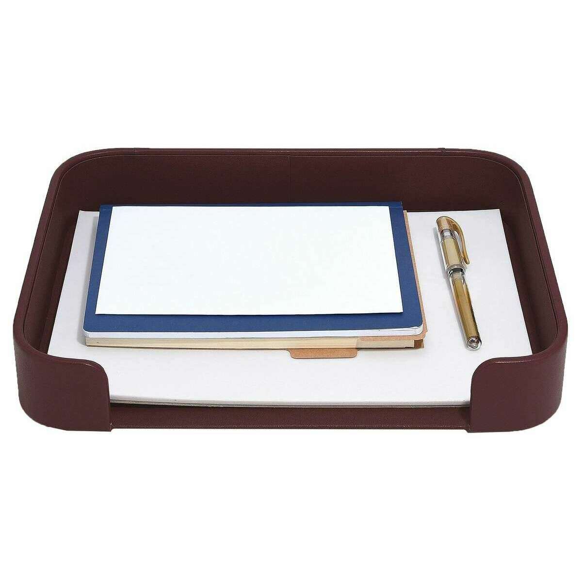 Ten zestaw organizerów na biurko dla kobiet został wykonany ze sztucznej skóry w bordowym kolorze i pochodzi od marki Stackers. Wymiary: 20 cm (wysokość) x 25 cm (szerokość) x 33 cm (głębokość). Wszystkie akcesoria do biurek są dostarczane w komplecie z opakowaniami do układania. Zestaw organizerów na biurko Stackers - Garnet Burgundy ma piękny bordowy design. Ten organizer na biurko ma wiele przegródek na artykuły papiernicze, notesy i wiele innych drobiazgów. W komplecie z półką na listy zapewniającą dodatkowe miejsce do przechowywania.