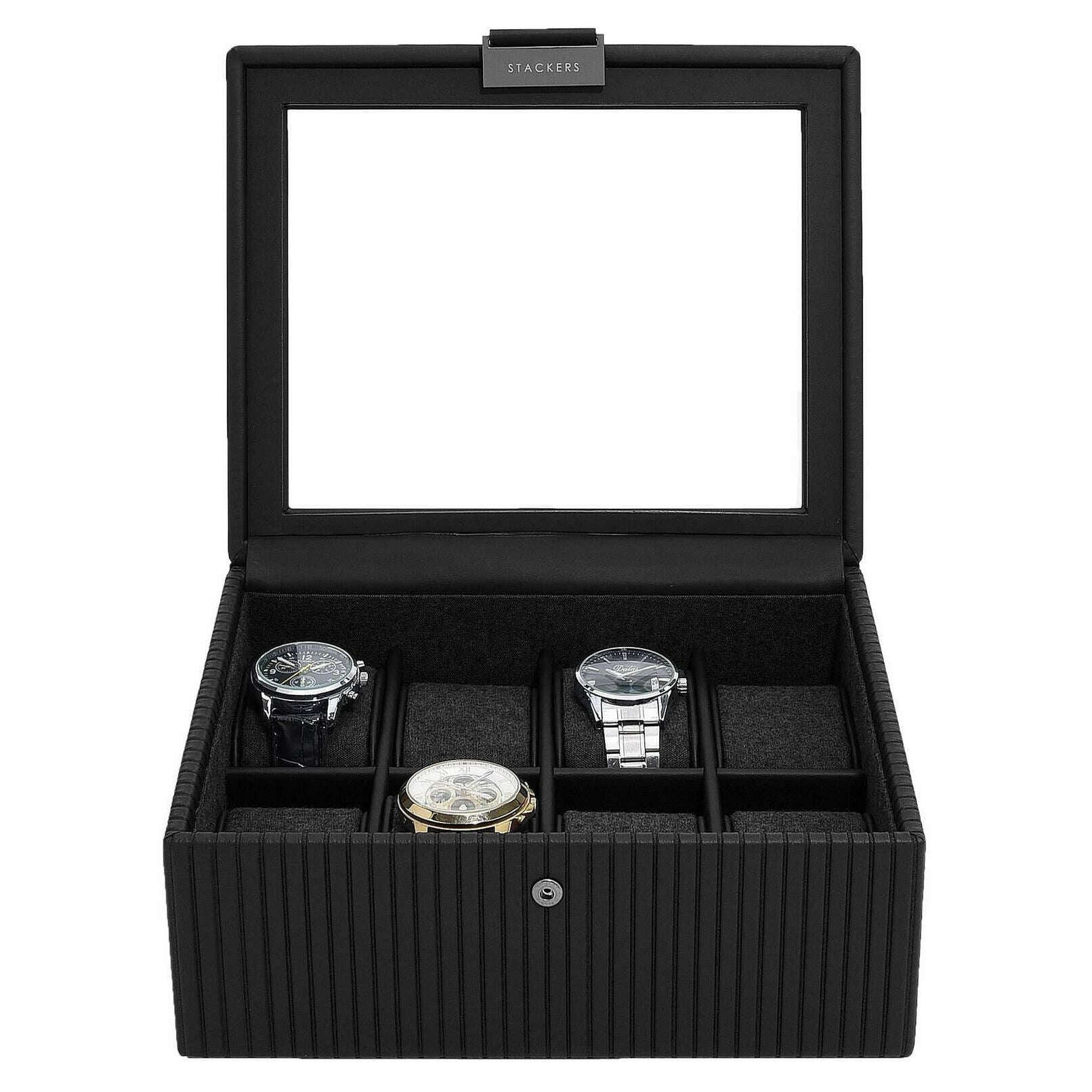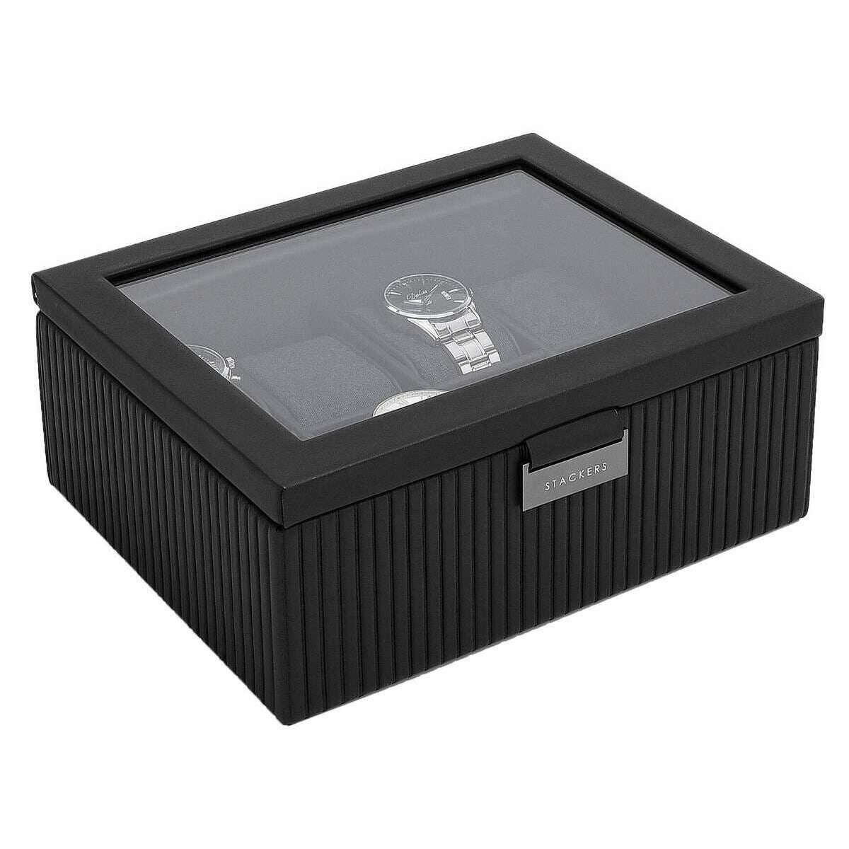 Stackers Karbowane 8-częściowe pudełko na zegarki - czarne