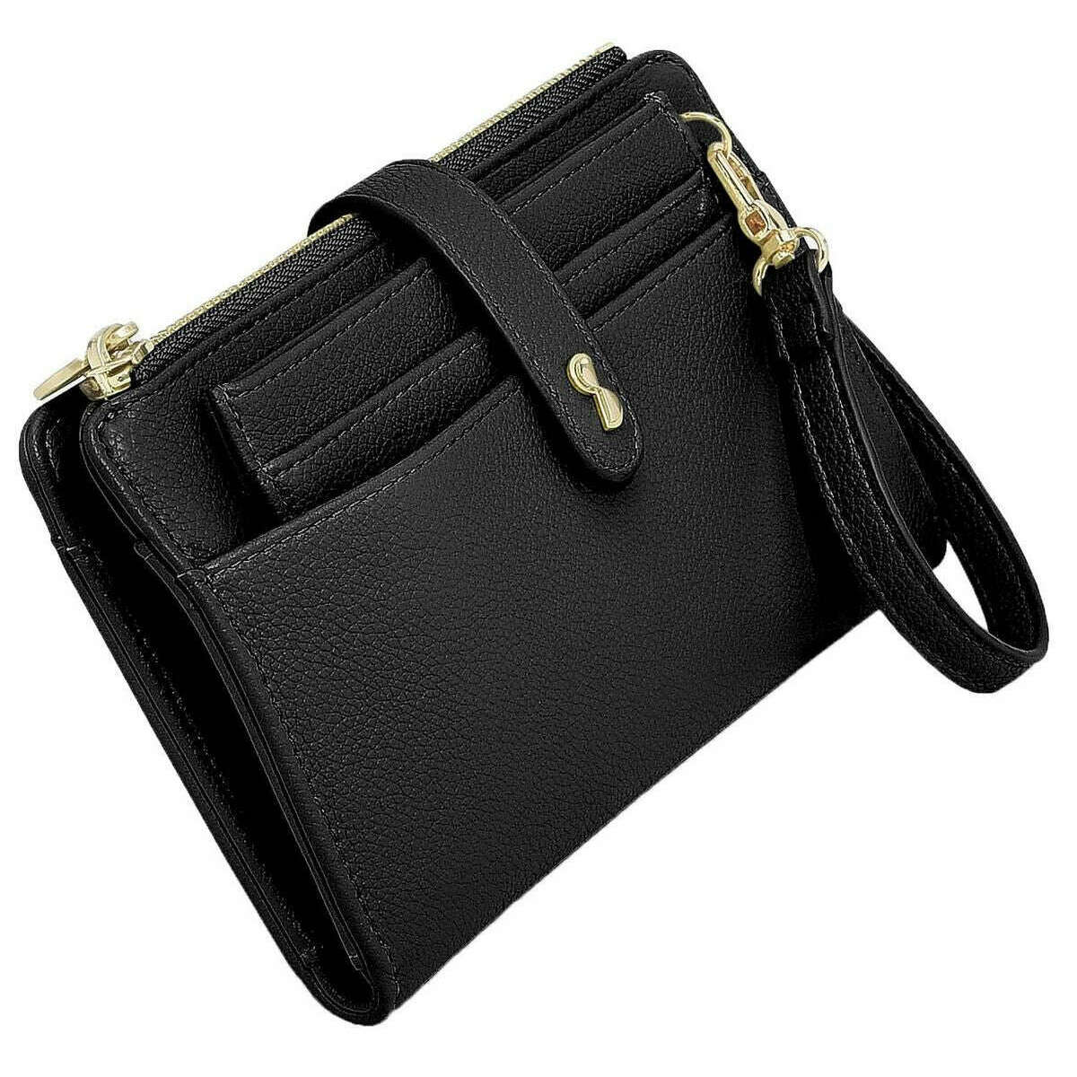 Ta duża torebka damska została wykonana ze sztucznej skóry w czarnym kolorze i pochodzi od marki Stackers. Wymiary: 12,5 cm (wysokość) x 19,5 cm (szerokość) x 3 cm (głębokość). Wszystkie torebki są dostarczane w komplecie z opakowaniami typu stacker. Duża torebka Stackers – czarna to must have w podróży! Ta klasyczna i modna czarna torebka ma wiele kieszeni na pieniądze i karty, wyjmowaną portmonetkę na karty i lusterko kosmetyczne. W komplecie odpinany pasek na nadgarstek i zewnętrzna kieszeń na telefon. Idealne na każde wyjście!
