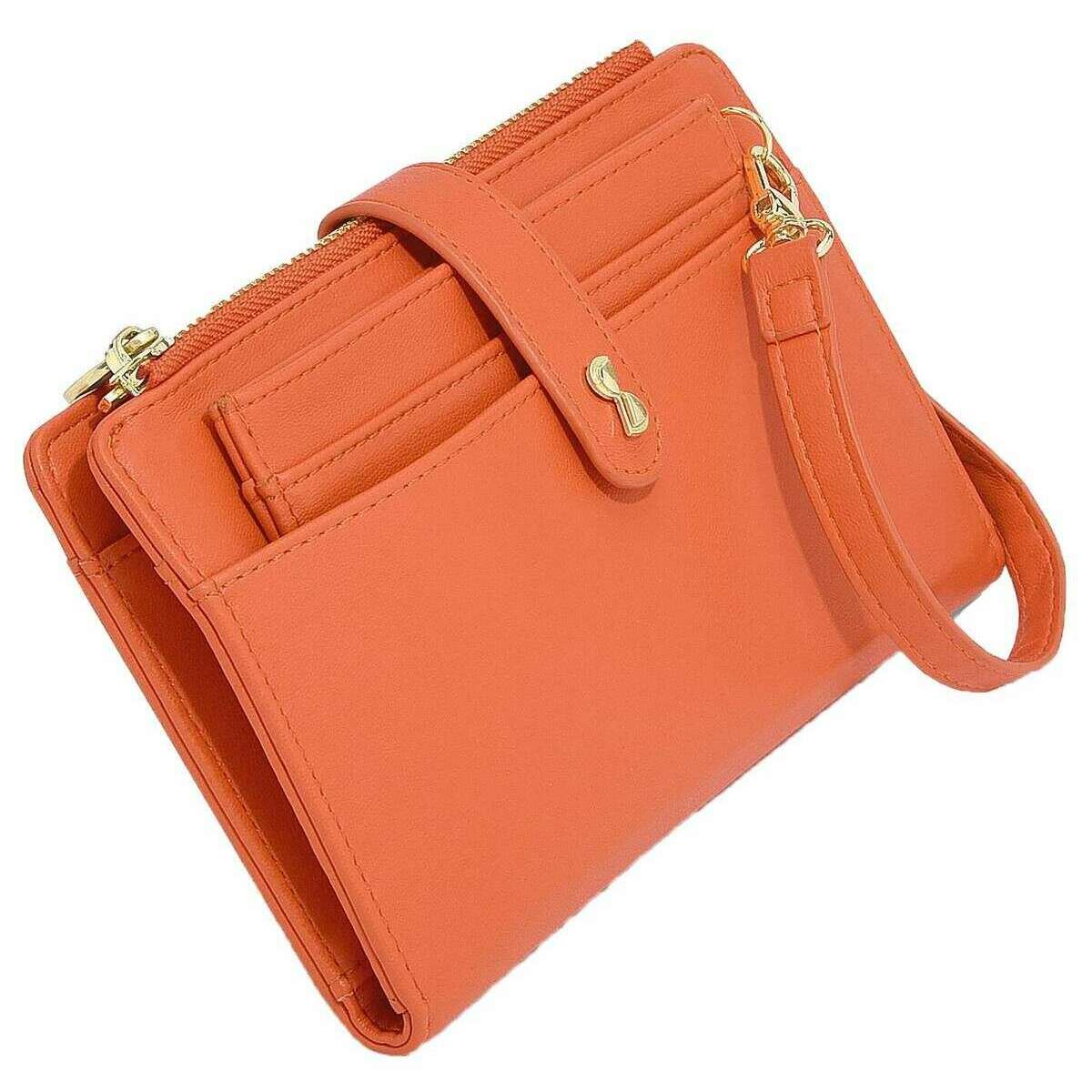 • Zewnętrzna kieszeń na telefon , 6 miejsc na karty , lusterko kosmetyczne , wyjmowana kieszonka na monety zapinana na zamek , odpinany pasek na nadgarstek , zapięcie na zatrzask